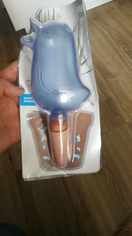 товар пришёл целый, упаковка только помялась. хотела, чтобы воды хватало цветам хотя бы на неделю, но или воздух слишком сухой, или объём птички маленький, но воды хватает только на три дня, то есть налить воды и уехать куда-нибудь не вариант, а так для тех, кто также как и я забывает полить цветы очень подойдет.