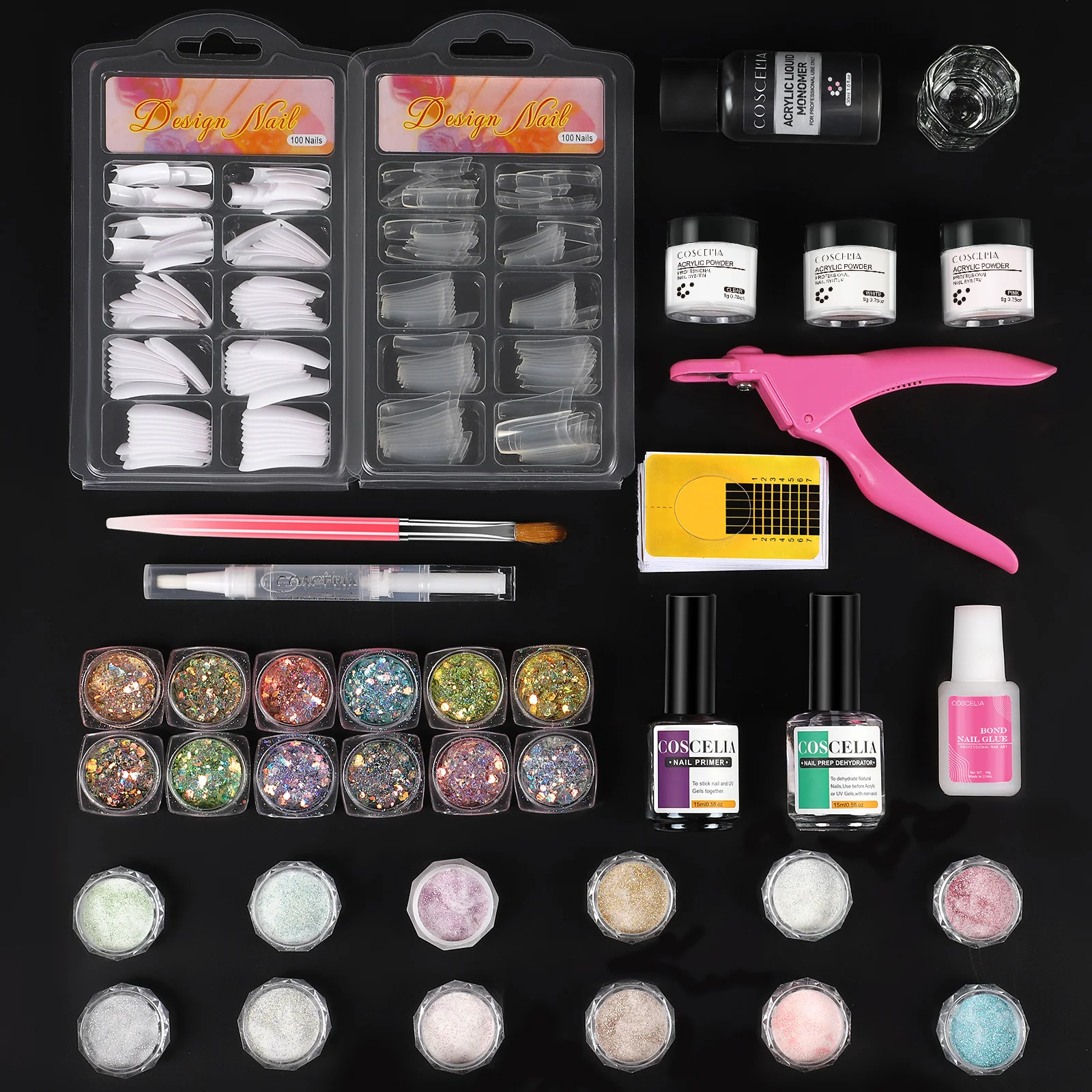 Акриловый набор COSCELIA для дизайна ногтей полный набор для маникюра с блестками Набор для украшения ногтей акриловая жидкость все для маникюра инструменты для ногтей