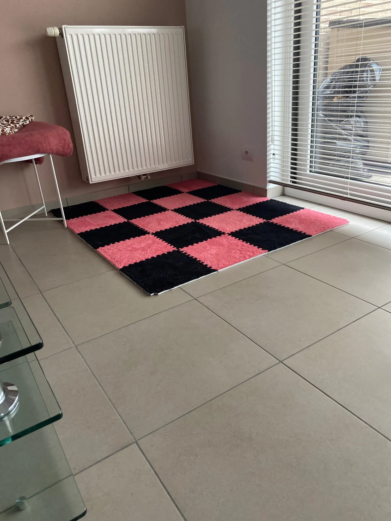 Заказано 29 ноября, запланированная дата доставки 29 декабря. Заказ прибыл 13 декабря, он пришел из Китая, с которым очень быстрая доставка. Цвет практически такой же, как на моем экране Качество более или менее хорошее, я не знаю, как долго это продлится, но он легко монтируется и очень расслабляется для холода, моя дочь в восторге. Толщина пены EVA составляет 0,8 см. С платьем от 1-1,2 см. Предмет краев, мой вышел из строя, я поставил только на 1 сторону, в случае размещения на 4 стороны было бы коротким.