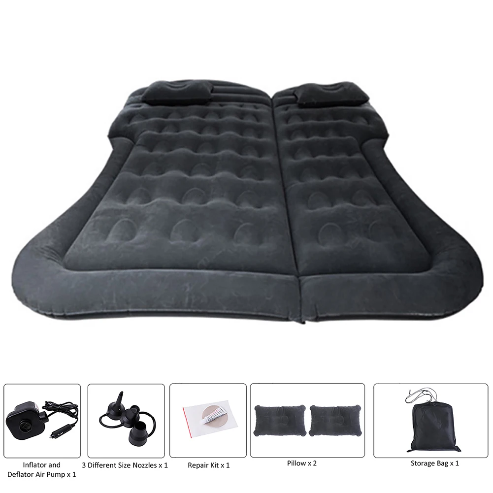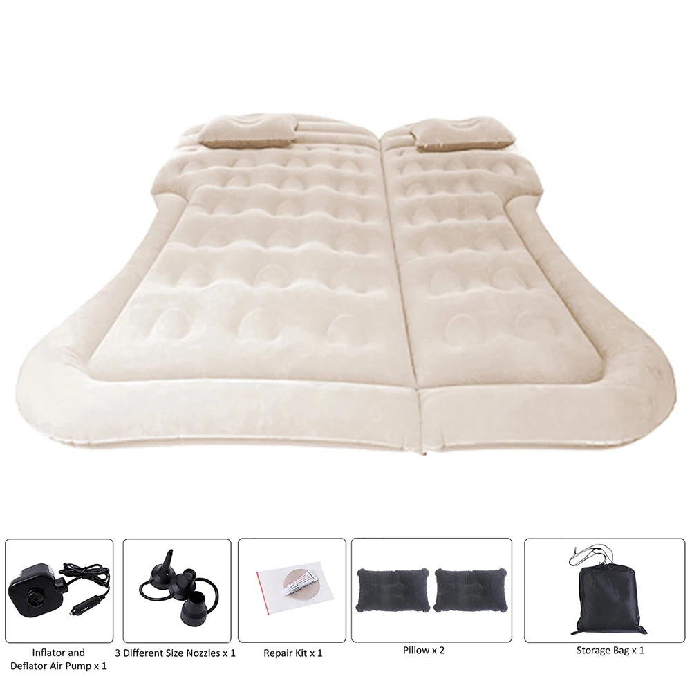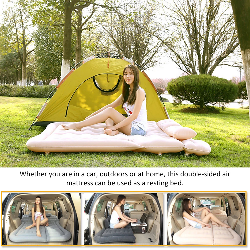 Быстрая надувание и Дефляция: подушки безопасности с обеих сторон могут быть быстро надуты или сдуты до необходимой твердости в течение нескольких минут. Твердость может быть скорректирована в соответствии с вашими потребностями. Чтобы надуть матрас, вам нужно только подключить насос в гнездо прикуривателя автомобиля, а затем прокачивать воздух в матрас через насадку.