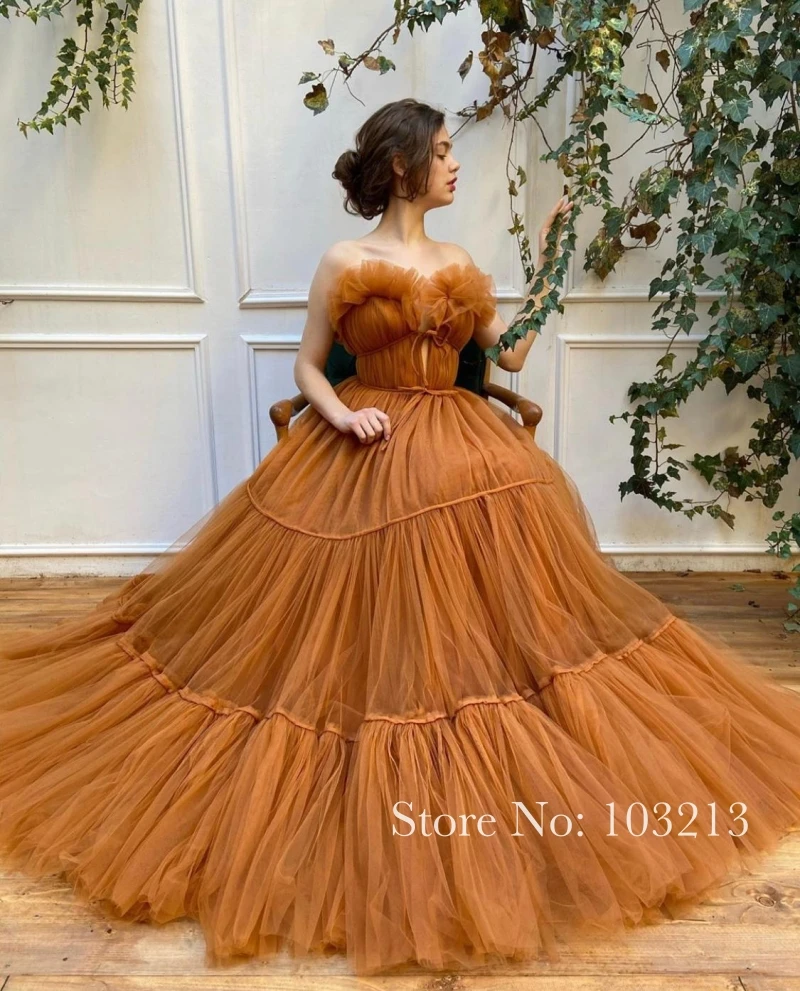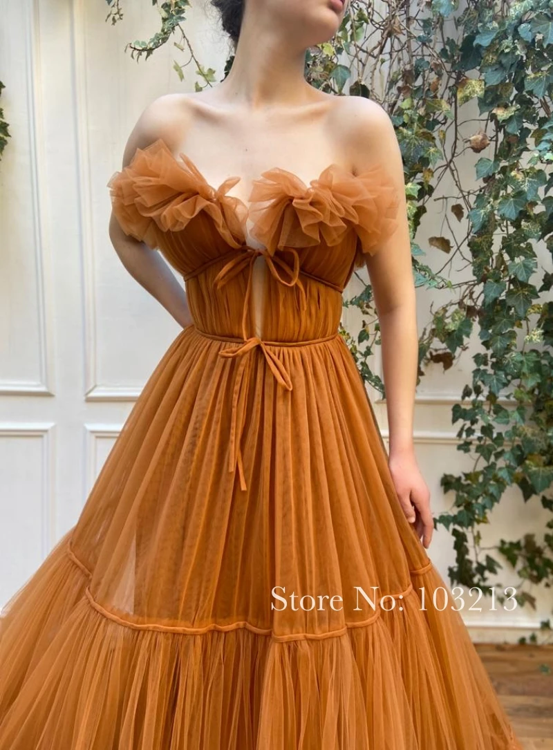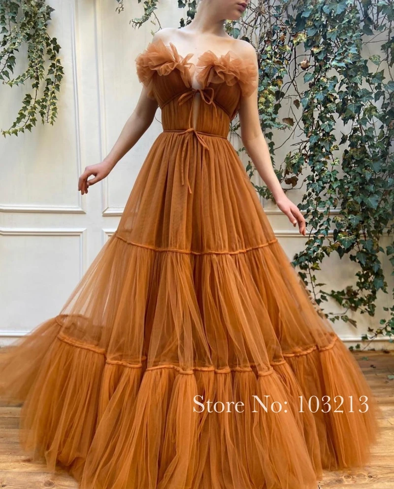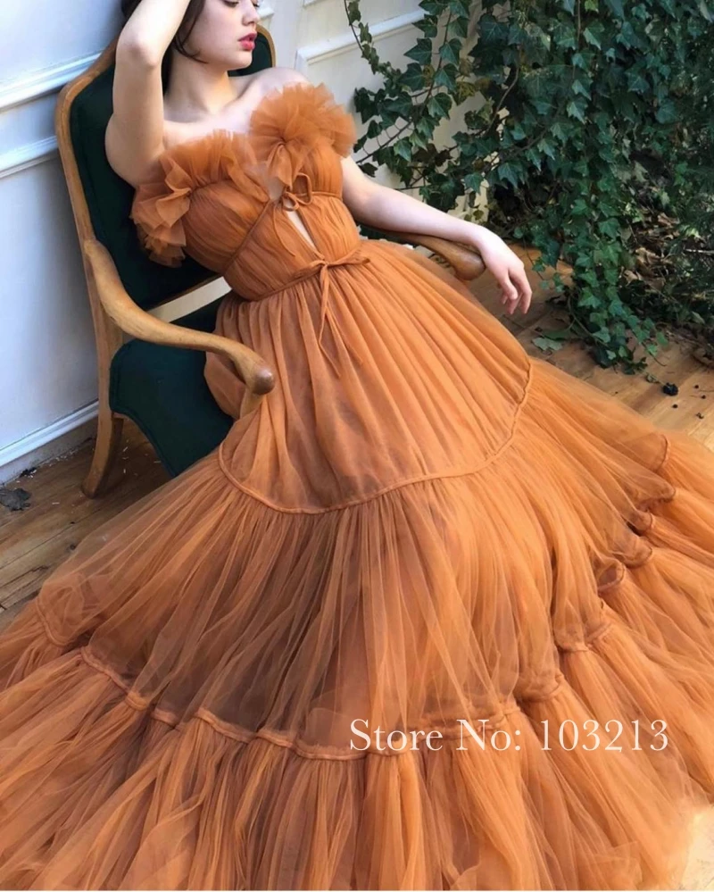 Красивая оранжевый Цвет оборками Тюлевое платье, платье на выпускной, платье, а-силуэт, длинный день рождения вечерние платье длинное платье для выпускного вечера платья 2021