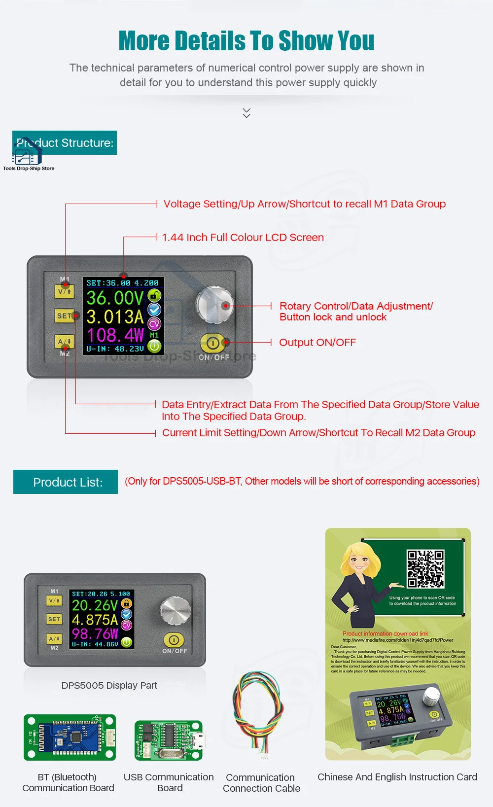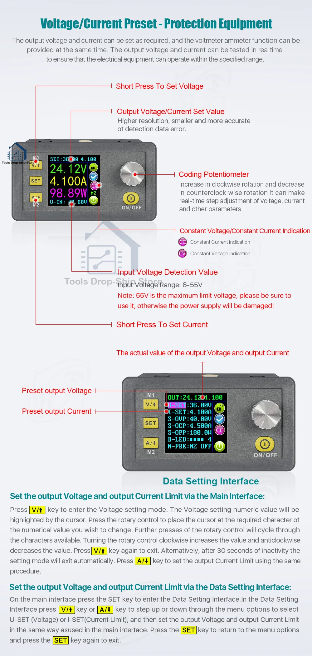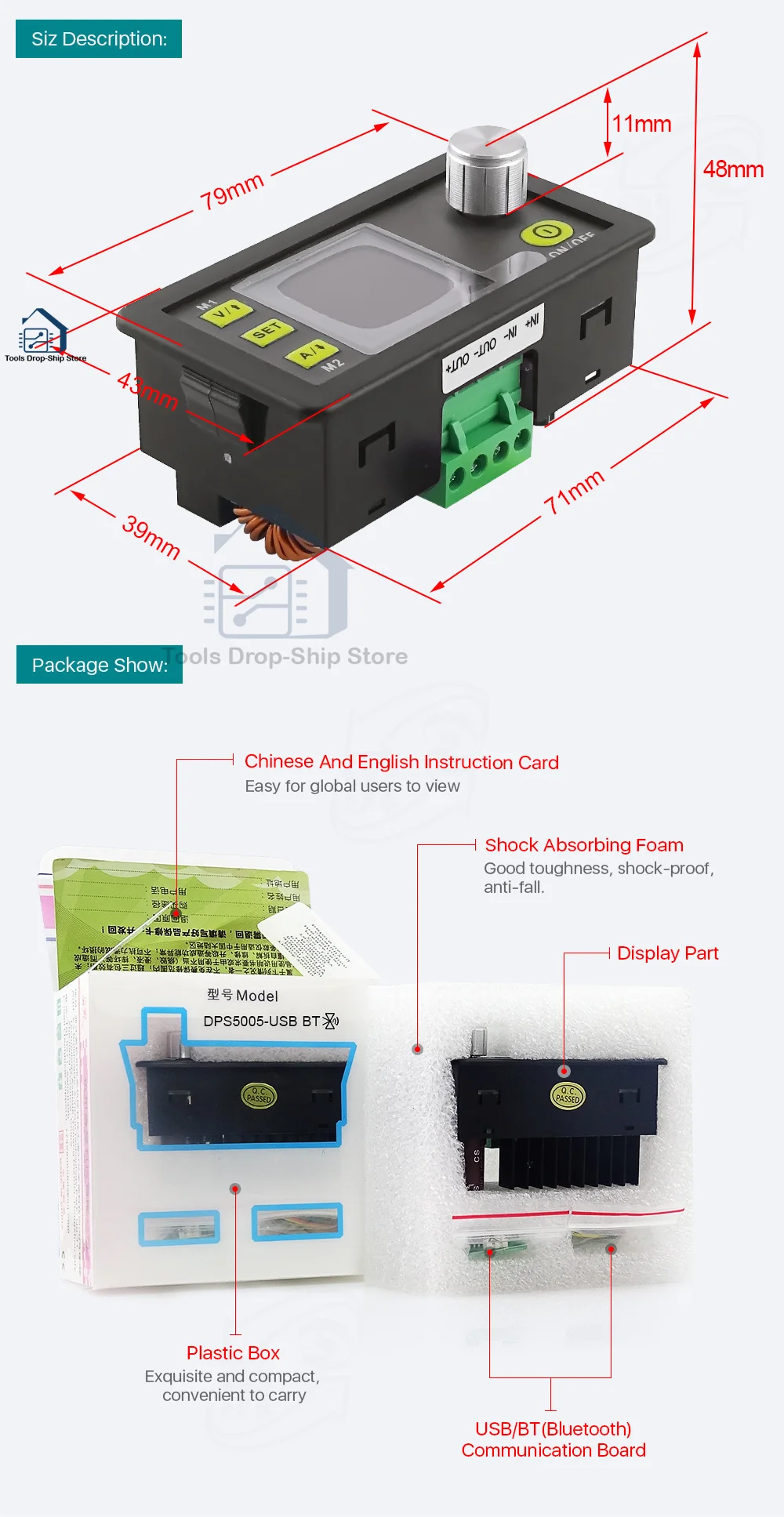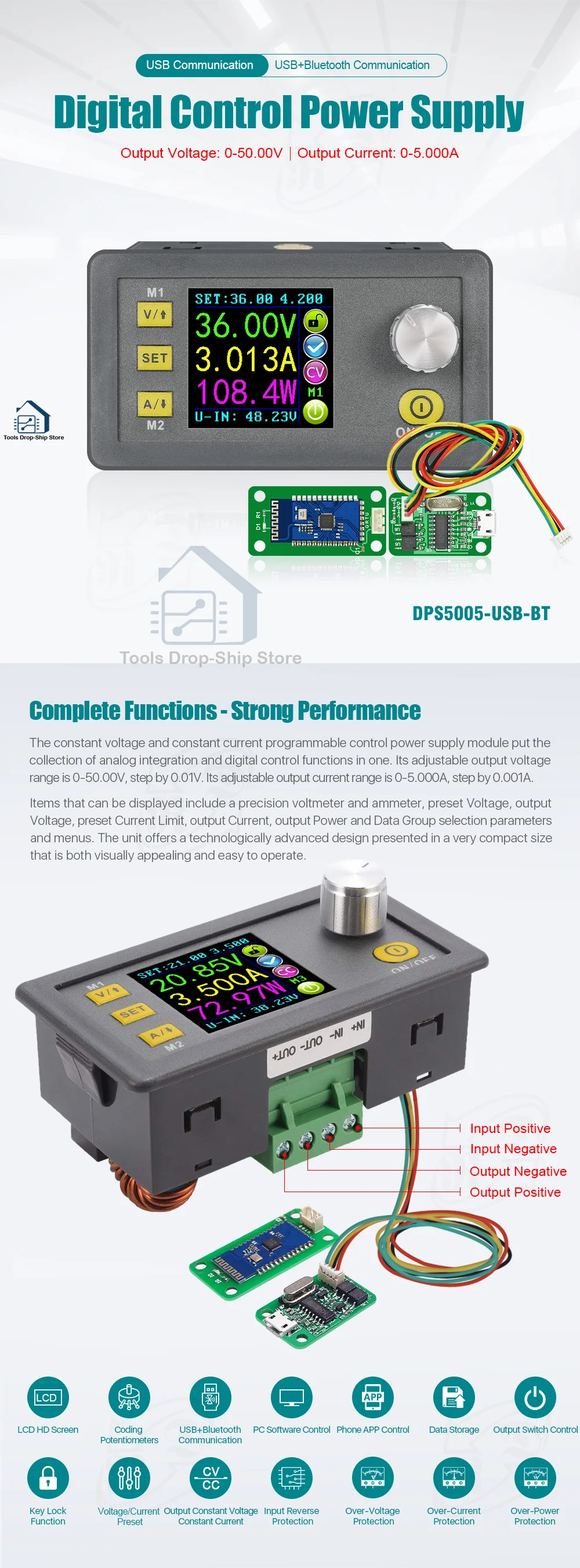 Модуль питания DPS5005, 50 в, 5 А, понижающий преобразователь постоянного напряжения DC-DC, вольтметр