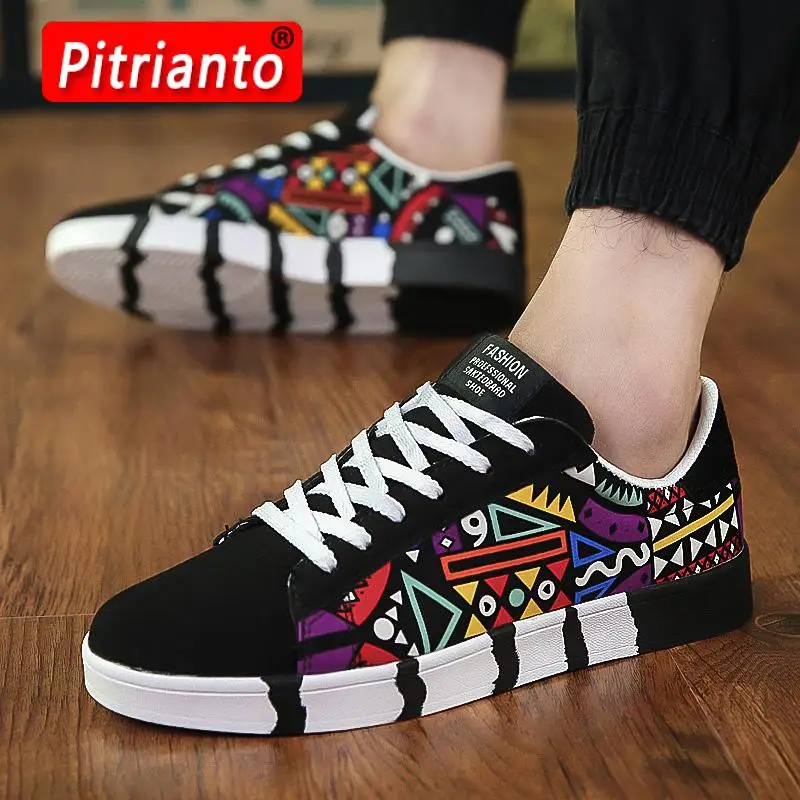 Мужские Текстильные кроссовки, Вулканизированная подошва, на шнуровке, дышащие, повседневная обувь с граффити, плоская подошва