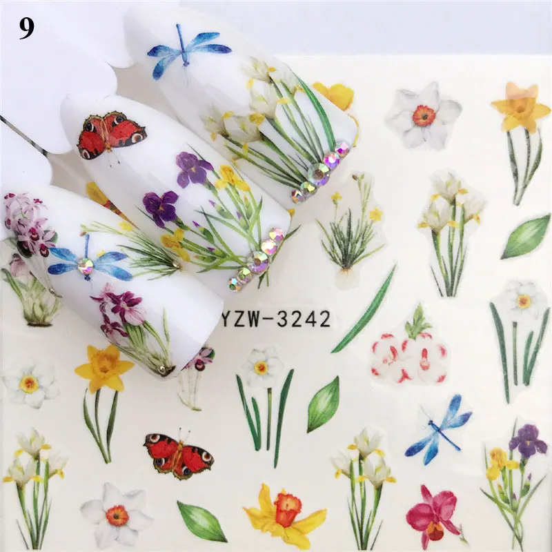 Наклейки для ногтей 10 видов стилей цветок для ногтевого дизайна во...