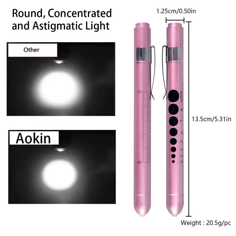 Aokin медицинская ручка светильник s для медсестер, врачей, многоразовые светодиодный медицинская ручка светильник вспышки светильник с датчиком зрачка и линейка белый светильник