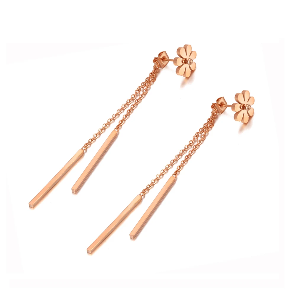 Модные длинные сережки-палочки женские 585 цвета розового золота, п...