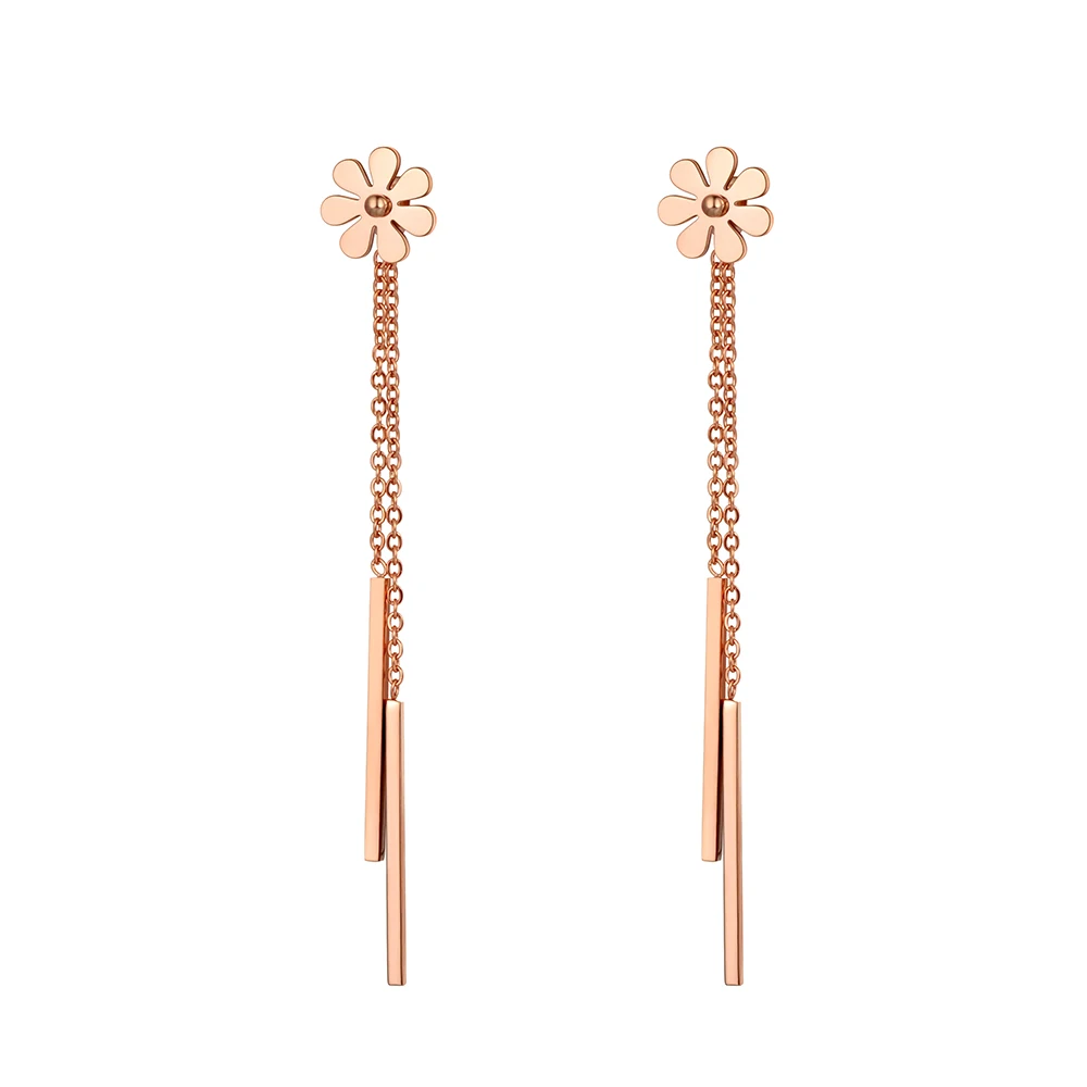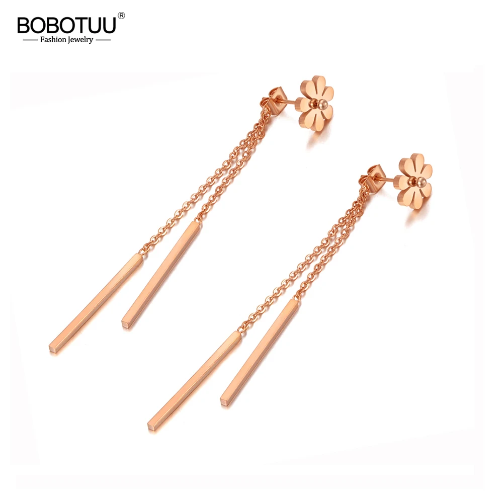 BOBOTUU модный 316L из нержавеющей стали маргаритки длинной кисточкой, серьги для женщин и девушек, для офиса звено цепи серьги-подвески ювелирные изделия BE20068