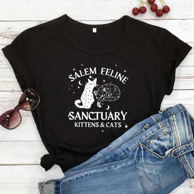 Звездного неба Луны кота футболка с ведьмой эстетическое женские Не...