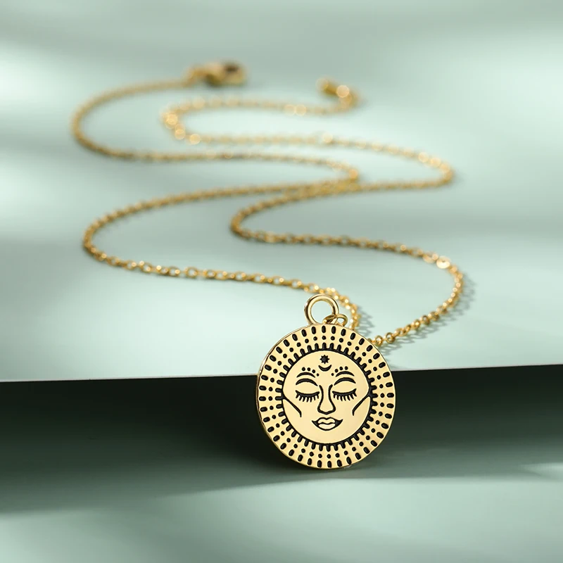 Ожерелье с солнцем для женщин, винтажное ожерелье из нержавеющей стали, эстетическое колье, Золотая подвеска с солнцем, пара, ювелирные аксессуары, подарки