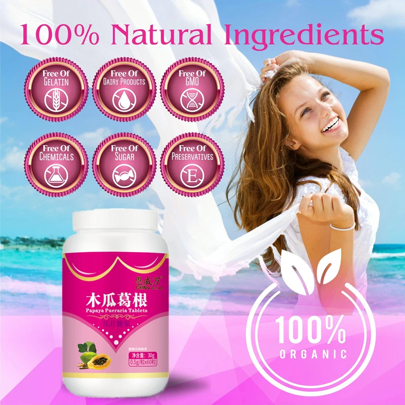 Новый пуэрария мирифика, экстракт папайи, жевательная таблетка, большой женский гормон для улучшения груди, эстроген