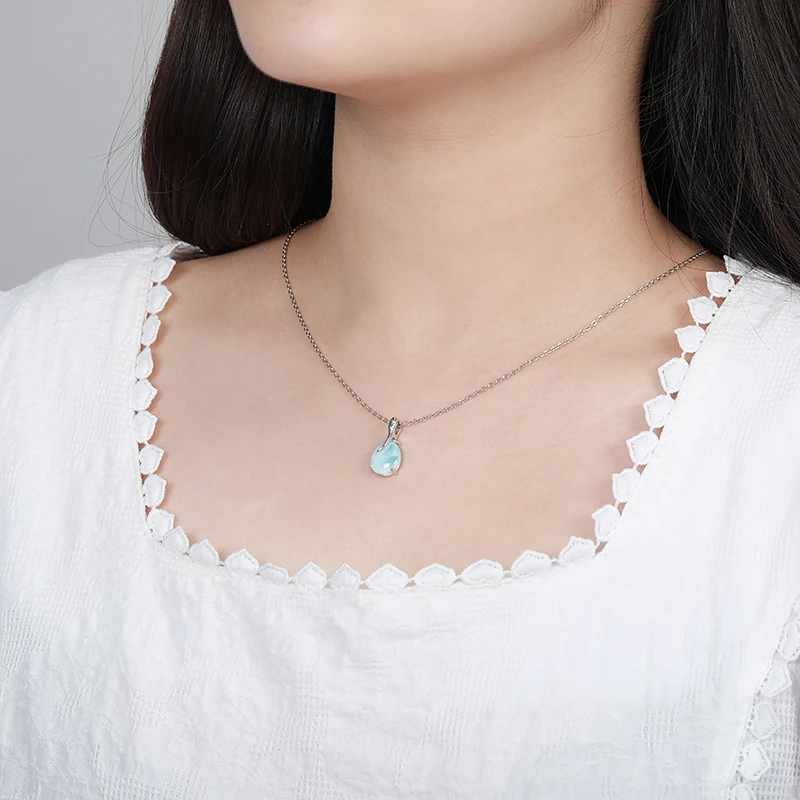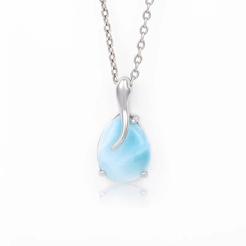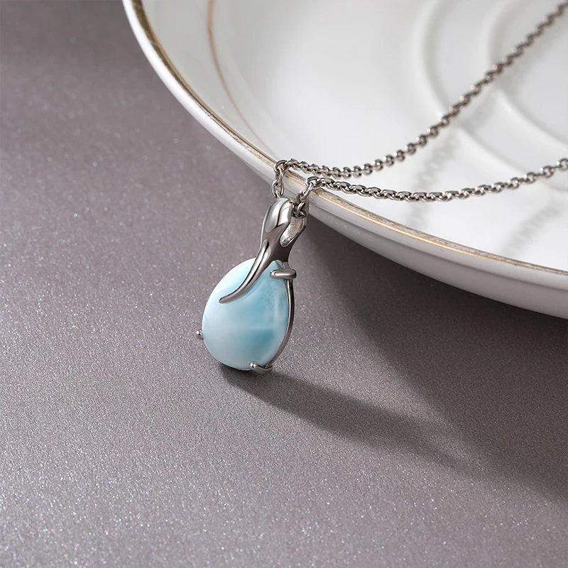 Позолоченные ювелирные изделия из стерлингового серебра 925 пробы, Классическая Подвеска на ожерелье натуральный драгоценный Larimar ретро Овальный Шарм для женщин