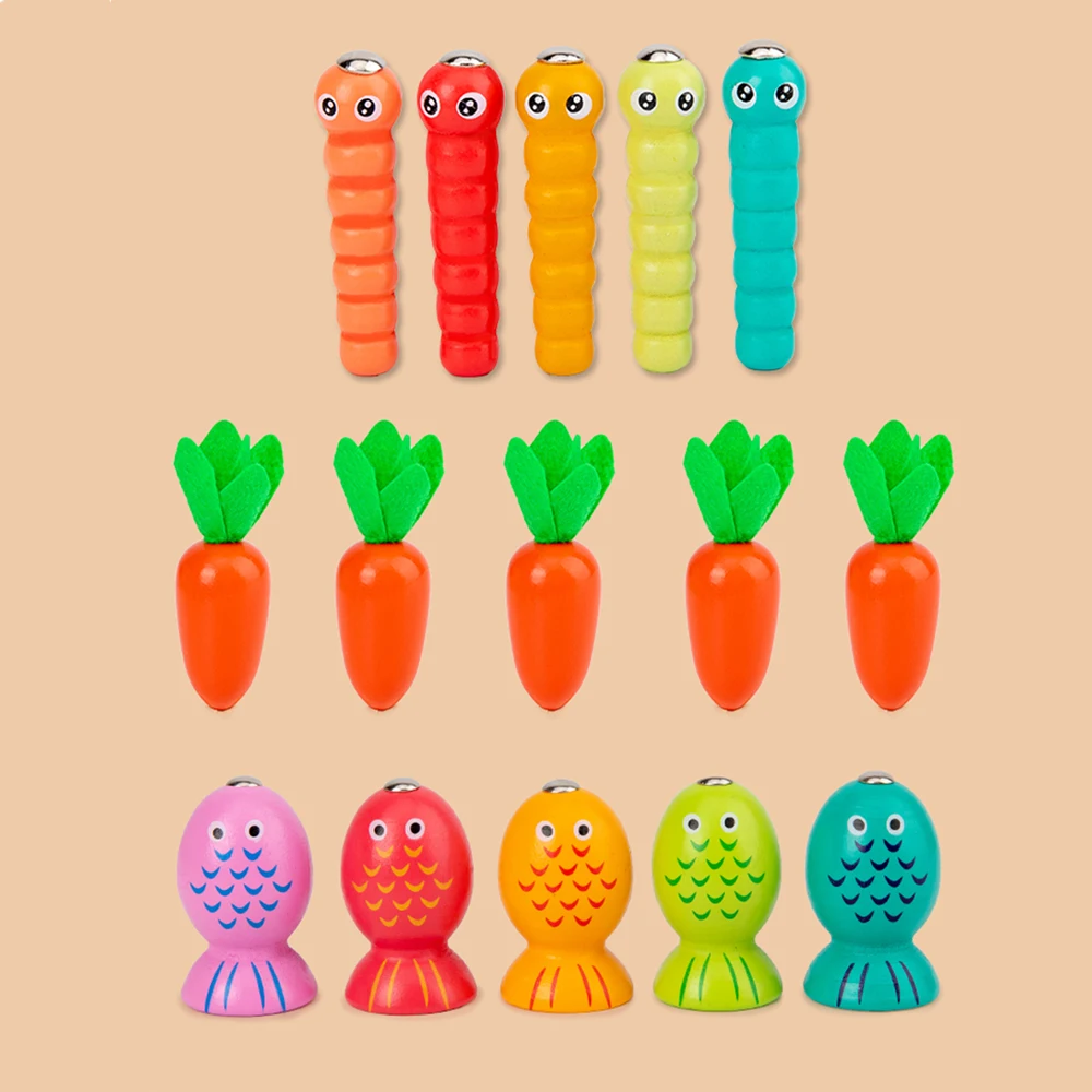 Магнитные деревянные игрушки для выщипывания, рыболовный червь для ...