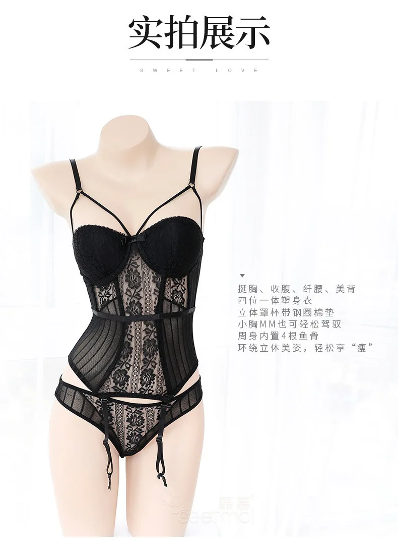 Комплект нижнего белья из дышащей ткани, бюстье с чашкой и поясом, цвет белый, черный, эластичный корсет