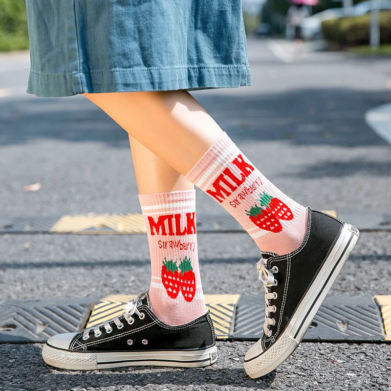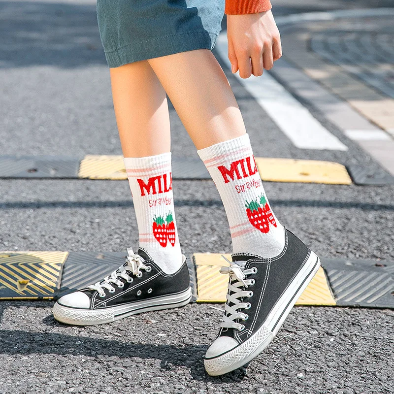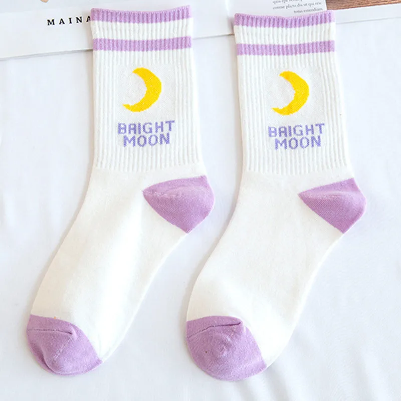 Носки женские хлопковые, разноцветные, с рисунком Луны, клубники, кактуса, счастье кавай
