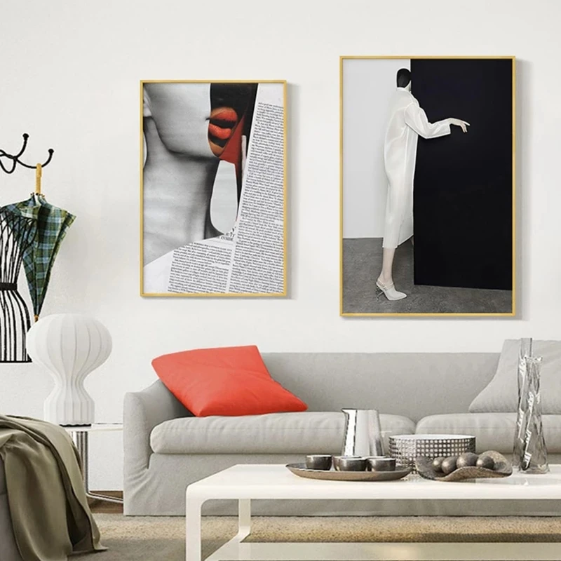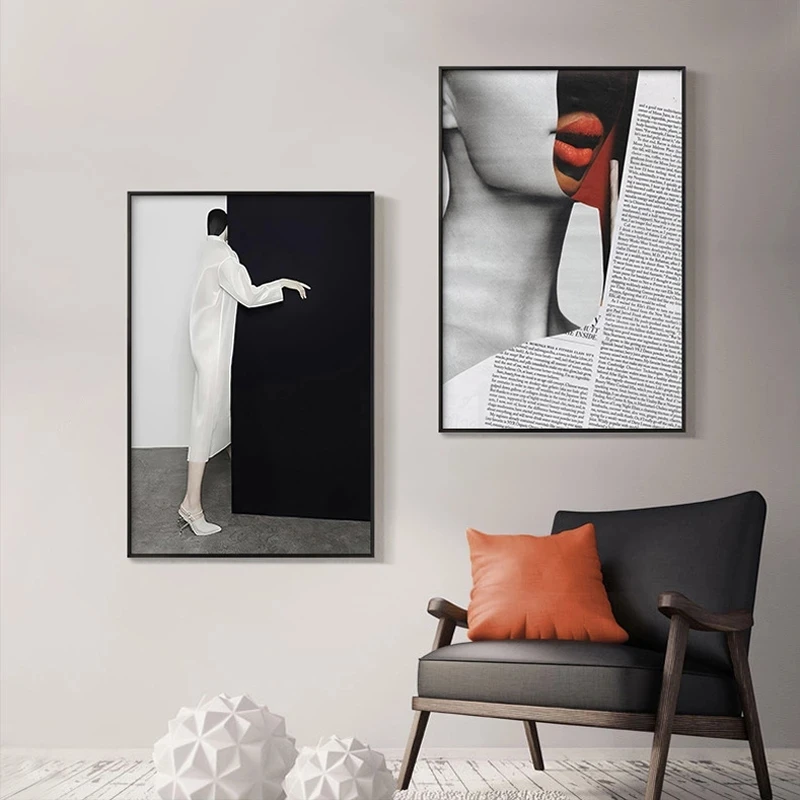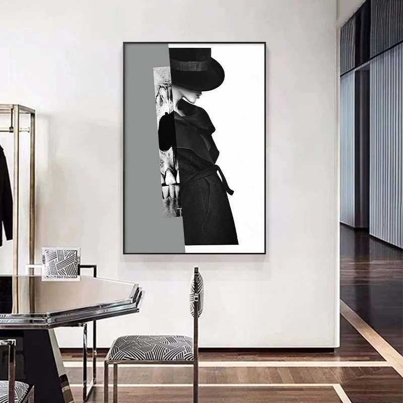 Абстрактная мода, Женский постер, настенное искусство, холст, черно-белые минималистичные картины для современного украшения дома, картины для интерьера