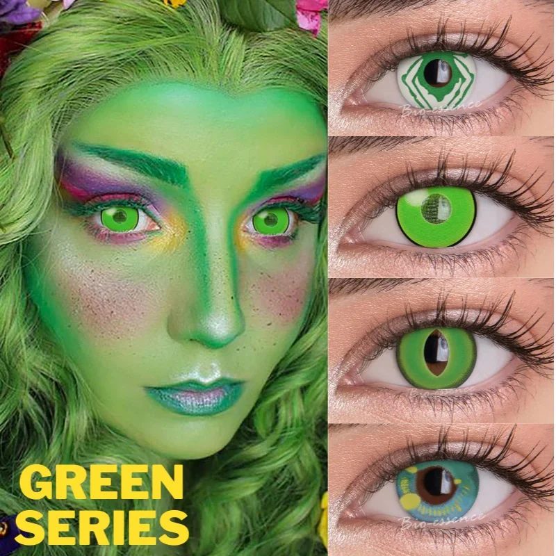 1 пара, цветные контактные линзы для косплея, для глаз, Хэллоуин, аниме, аксессуары для макияжа, зеленые линзы, цветные ed контакты