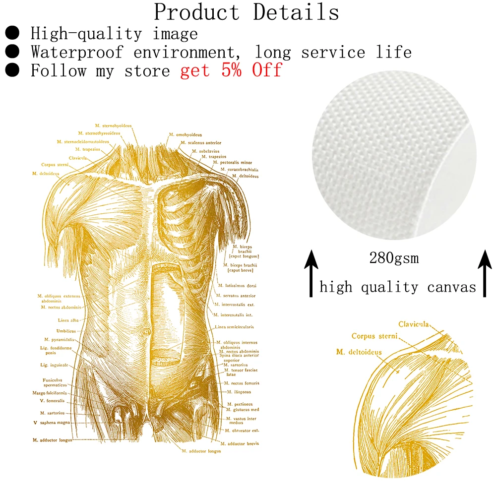 Мышц тела стены изображения, Анатомия человека, медицинский работает, развивающие картины, современный, декорации, постеры на холсте