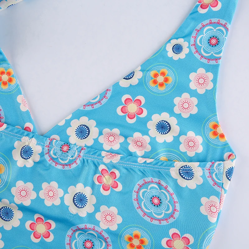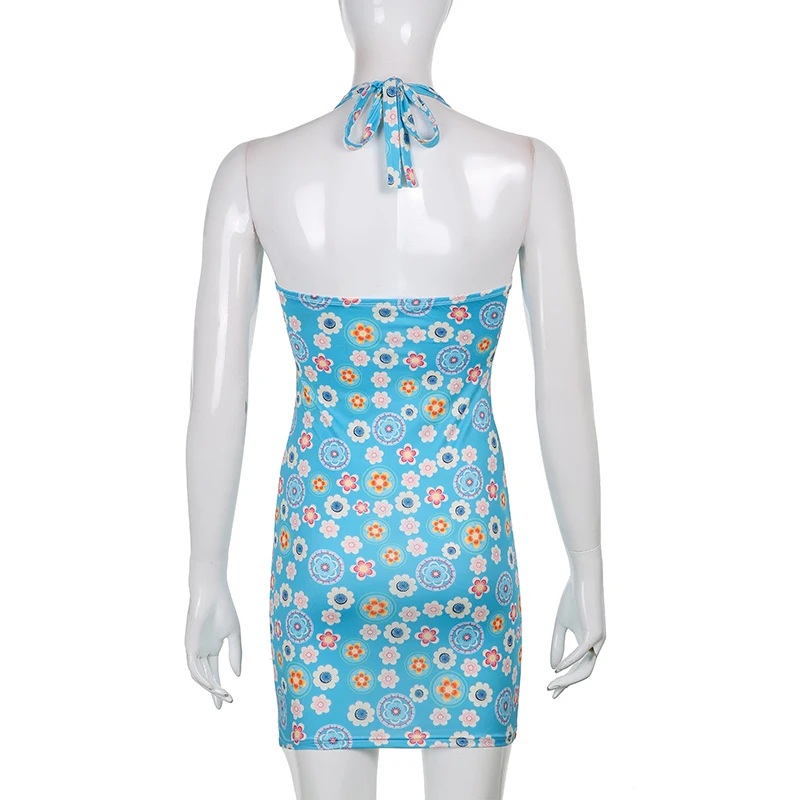 Женский мини-сарафан с цветочным принтом, V-образным вырезом и открытой спиной
