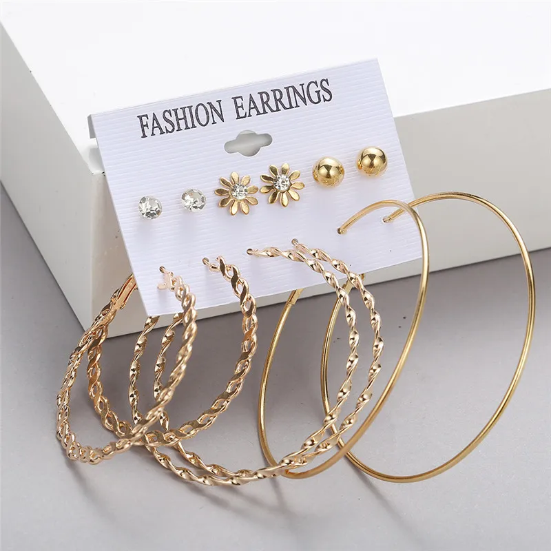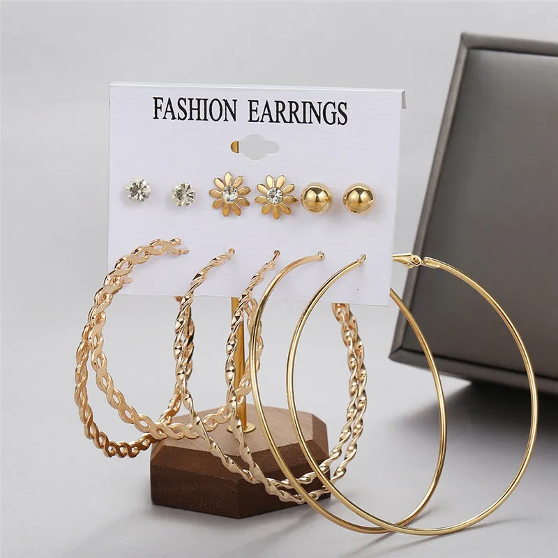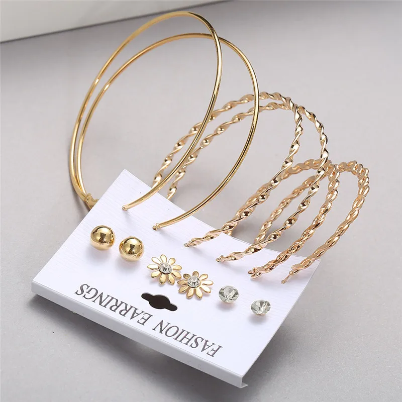 Комплект серег 17KM с крупными подвесками, маленькие круглые серьги...