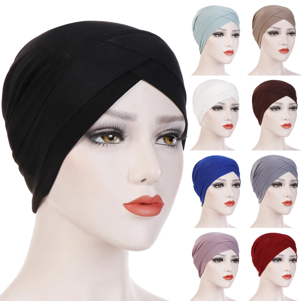 Шапка-тюрбан для хиджаб для мусульманок, хиджаб на лоб с перекрестн...