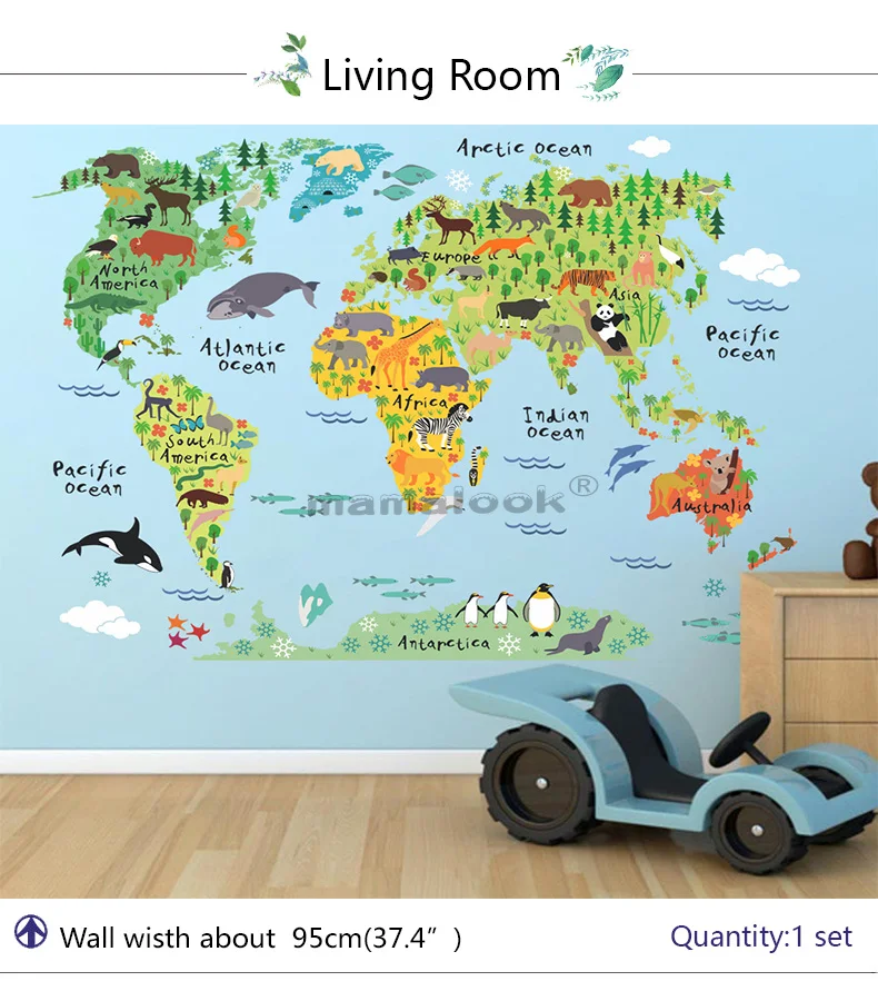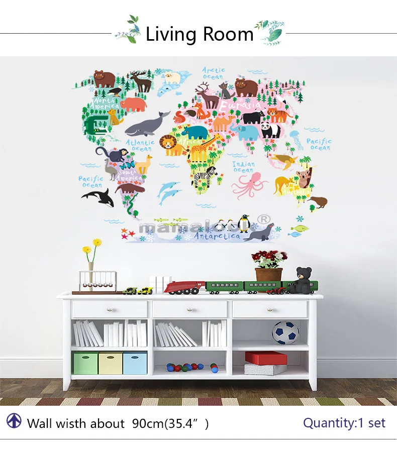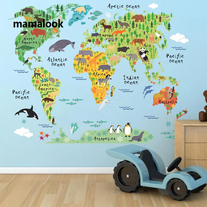 Мультяшные животные карта мира наклейки на стену для детской комнаты офиса Декор для дома ПВХ наклейки на стену diy роспись художественные плакаты
