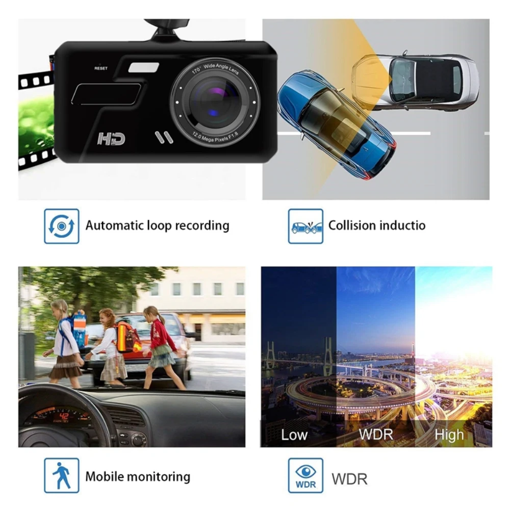 Автомобильный видеорегистратор, 4 дюйма, HD 1080P, сенсорный экран, Автомобильный видеорегистратор, звездный свет, ночное видение, парковочный монитор, G-сенсор