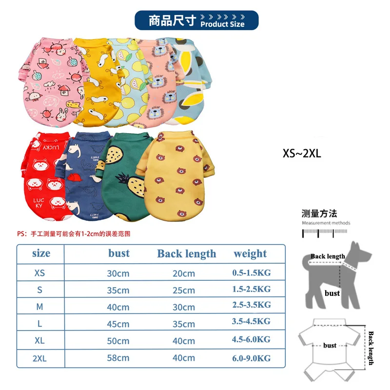 Советы: 1. Ручные измерения могут иметь погрешность в 1-3 см. 2. Для двух ног, пожалуйста, обратите внимание на обхват груди, и для четырех ног, должны соответствовать обхвату груди и длине спины. 3. Для растущего питомца лучше выбрать больший размер.
