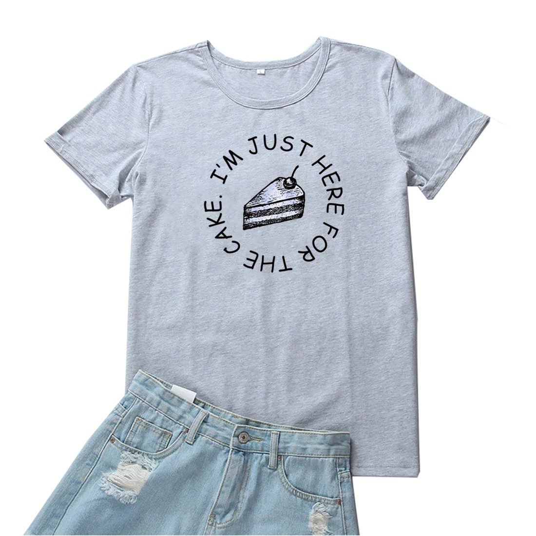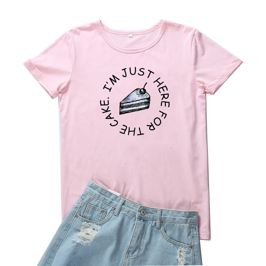 Женская футболка с принтом Я здесь для торта, модные топы, футболки для женщин, черная свободная футболка, Женская Эстетическая уличная одежда