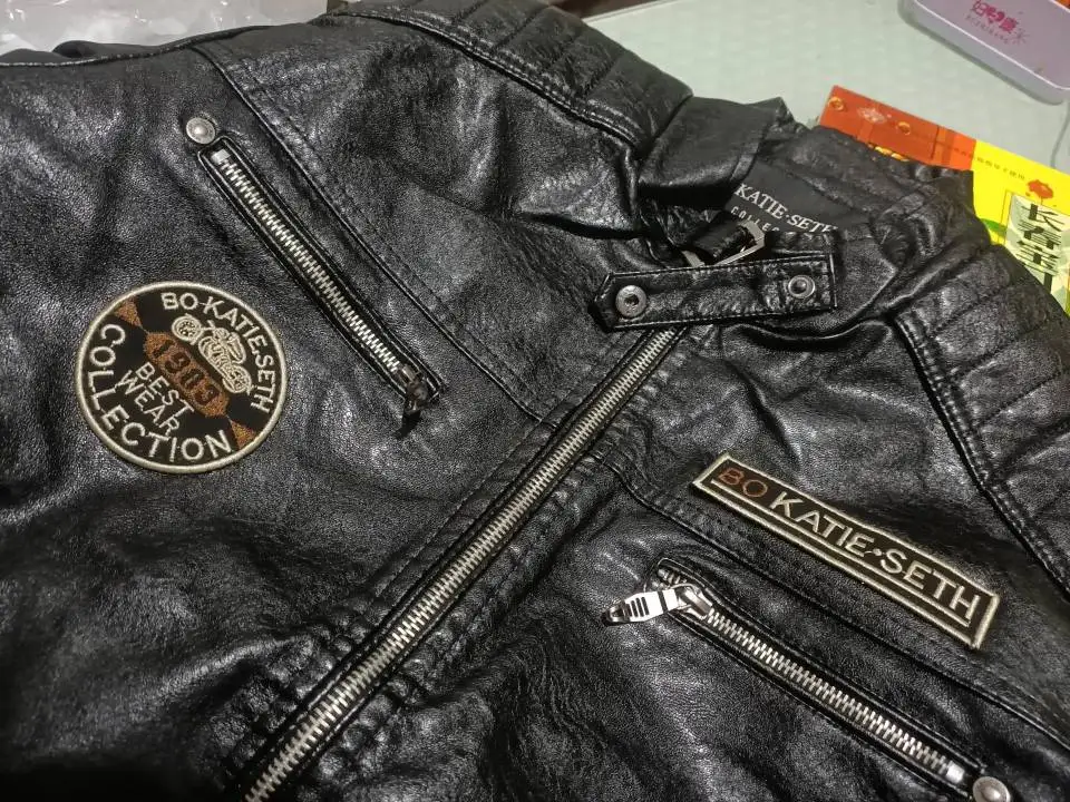 Куртка мужская из искусственной кожи, на флисе, с воротником-стойкой, размеры до 4Xl
