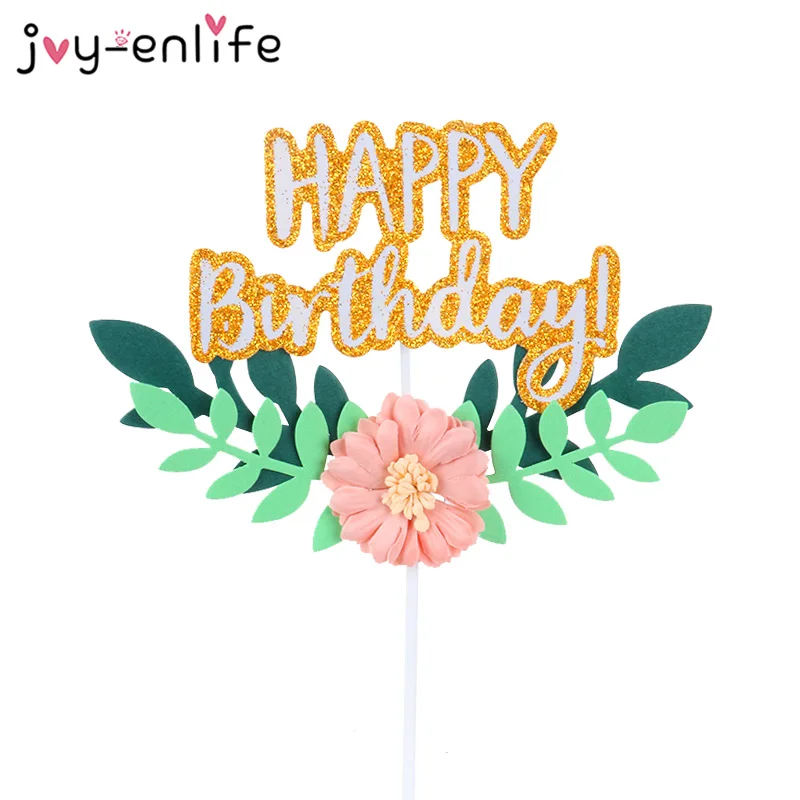 Цветок зеленый лист Топпер для торта С Днем Рождения украшения для кексов День рождения украшение для Выпечки Детский ДУШ свадебные украшения icon star icon star icon star icon star icon star