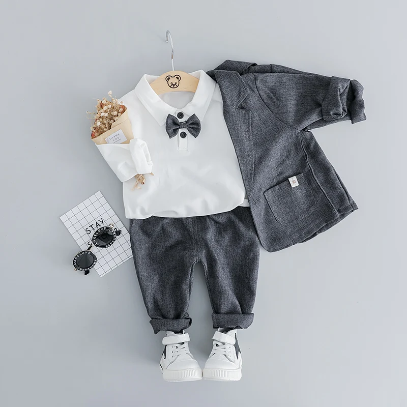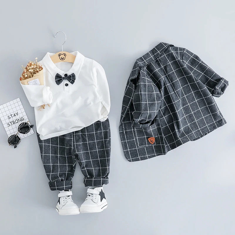 Весенние комплекты одежды для маленьких мальчиков, повседневная одежда для мальчиков, наряд в джентльменском стиле для малышей, клетчатые пальто, футболка и штаны