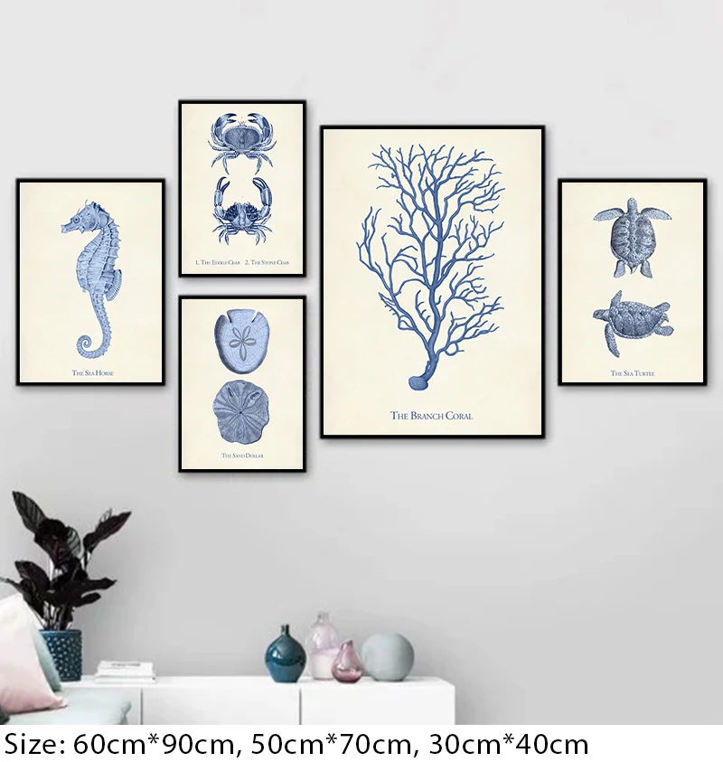 Ископаемая рыба, черепаха, краб, морская звезда, винтажная настенная живопись, плакаты и принты, скандинавские картины для гостиной, домашний декор