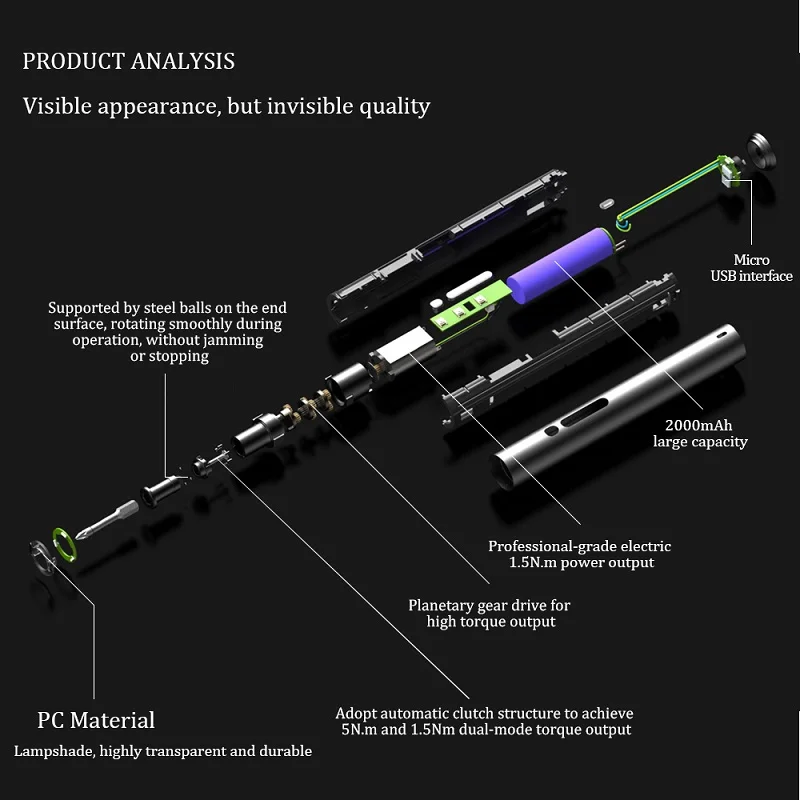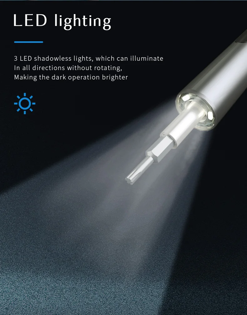 1. Литиевая батарея более долговечна для зарядки, мощность подшипника более стабильна, а литиевая батарея более экологически безопасна.2. Тщательно отобранные и оборудованные, 20 широко применимых отверток, широкий спектр использования.3. Ручная и автоматическая интегрированная Двухрежимная работа, более высокая эффективность.4,3 рабочий уровень лампы бестеневой светодиодный конфигурация лампы, трехмерный проекционный луч, больше нет теней, чтобы блокировать светильник, детали также могут быть ясными.5. USB зарядка, готов к использованию. Нижняя часть фюзеляжа-это usb-интерфейс для зарядки, а задняя часть-с индикатором состояния зарядки.6. Эргономичный дизайн горячей кнопки вперед и назад, принцип переключения, легко нажимать для достижения вперед и назад.7. Оснащен дегаузером, который может увеличить магнетизм бит и ослабить магнетизм бит.