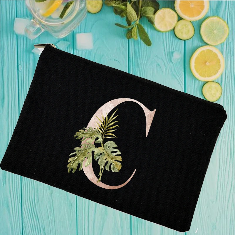 Тропические растения, сумки для макияжа с буквенным принтом, женский косметический чехол, женские дорожные туалетно-косметические принадлежности, органайзер для студентов, пенал, сумка для хранения