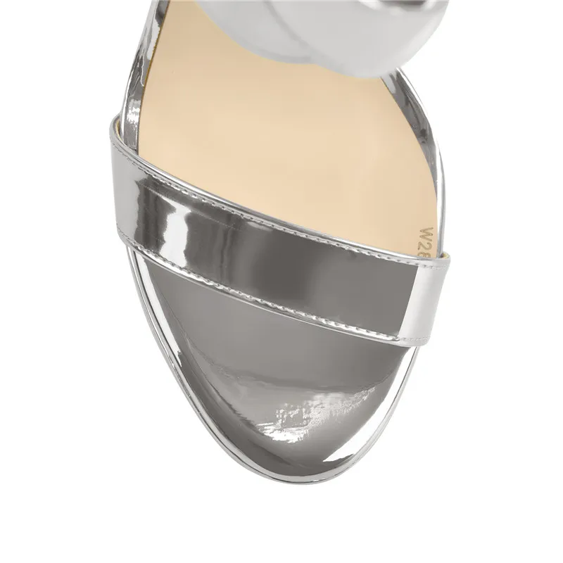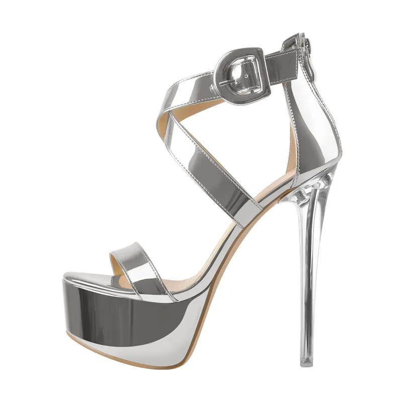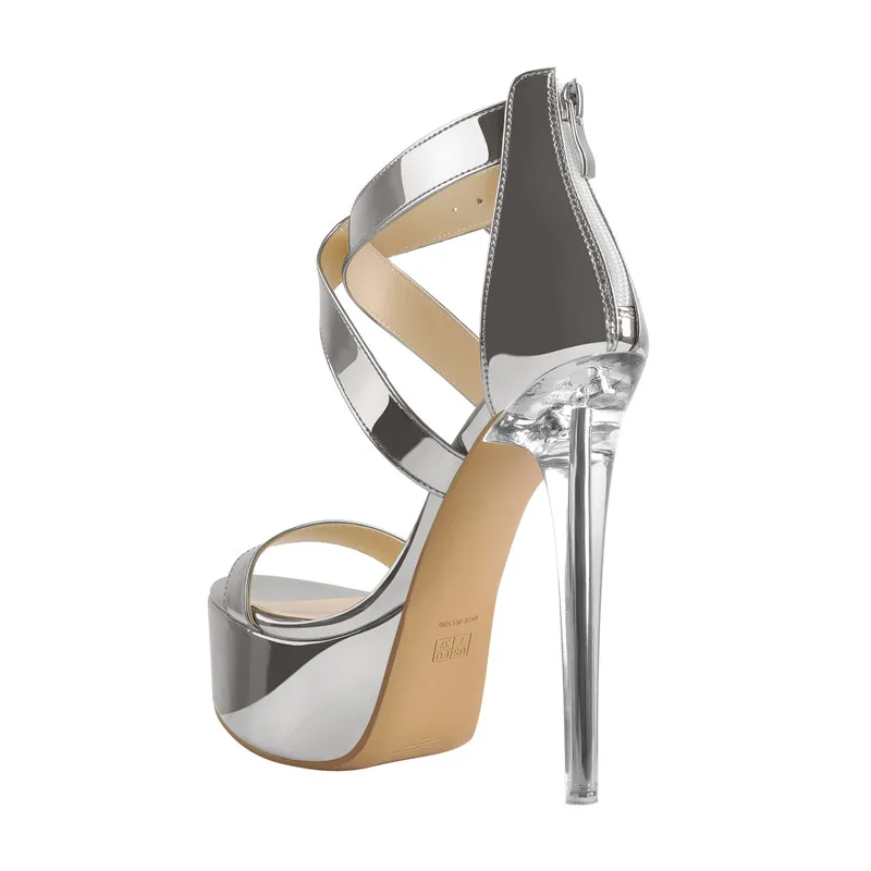 Onlymaker Для женщин открытый носок на высоком каблуке ботинки на платформе цвет серебристый, золотой крест-накрест Тонкий Высокий каблук шпилька сандалии под платье, для вечеринки