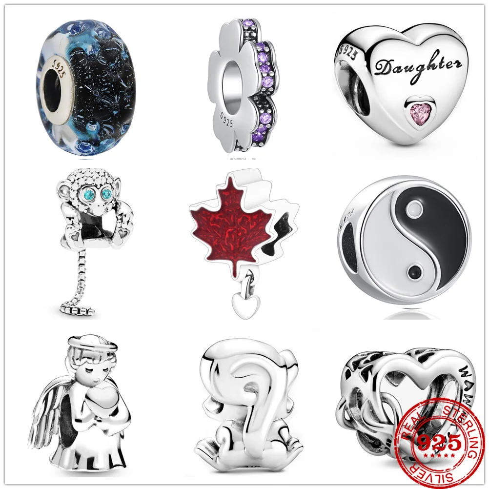 Женский браслет из серебра 925 пробы с подвесками в виде обезьяны, кленового листа, сердца, тыквы, автомобиля, ангела