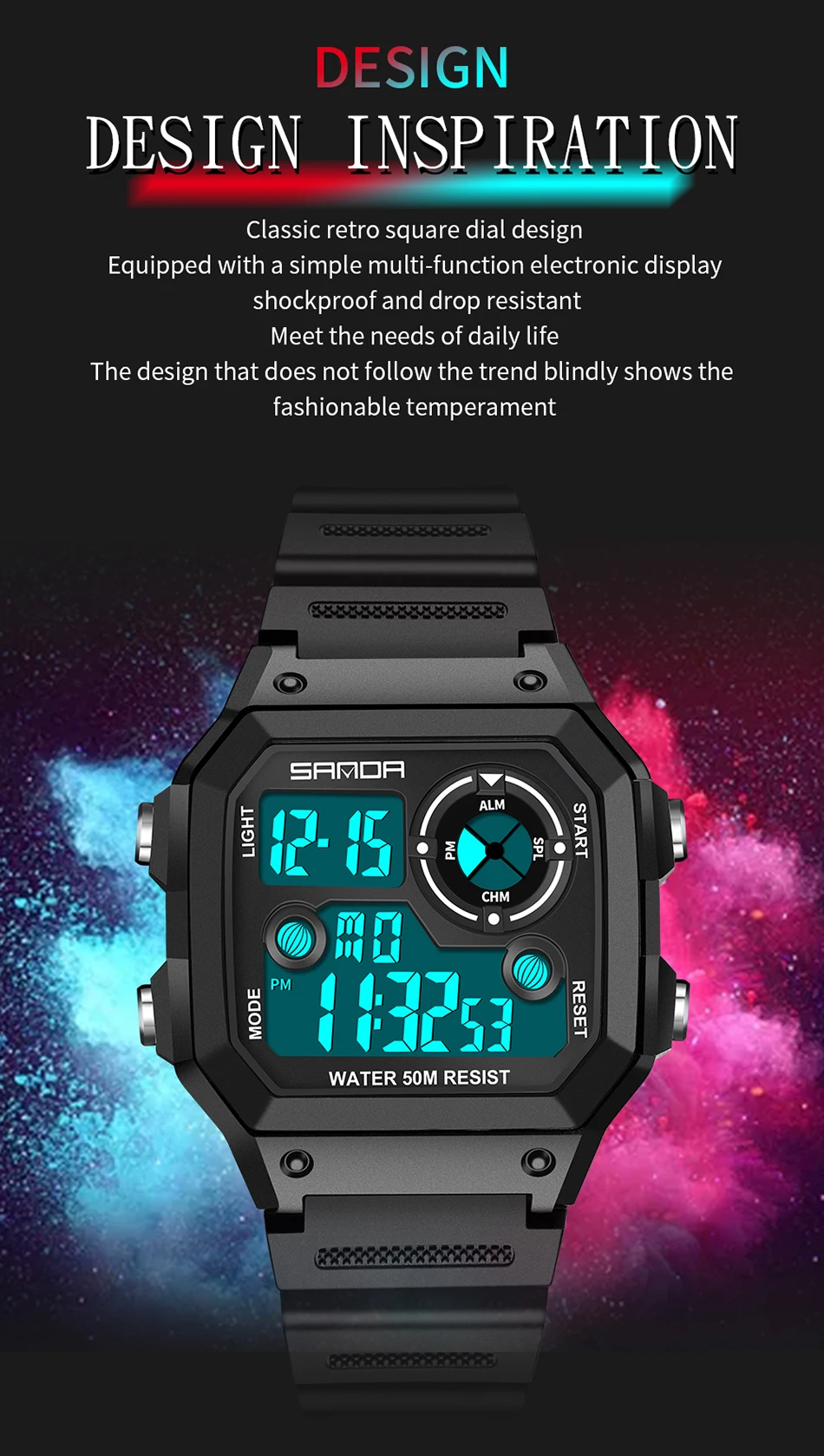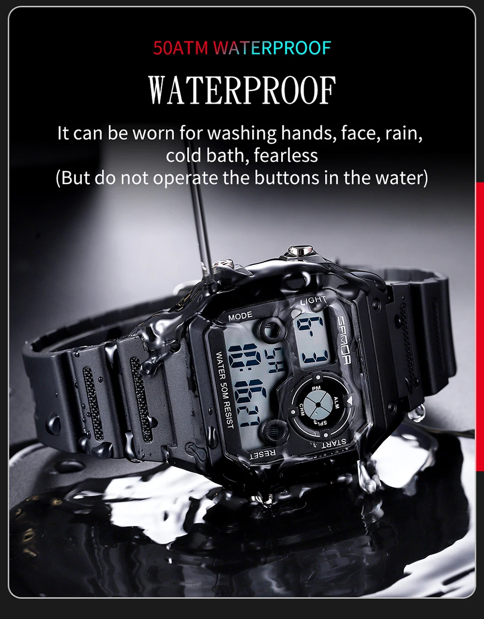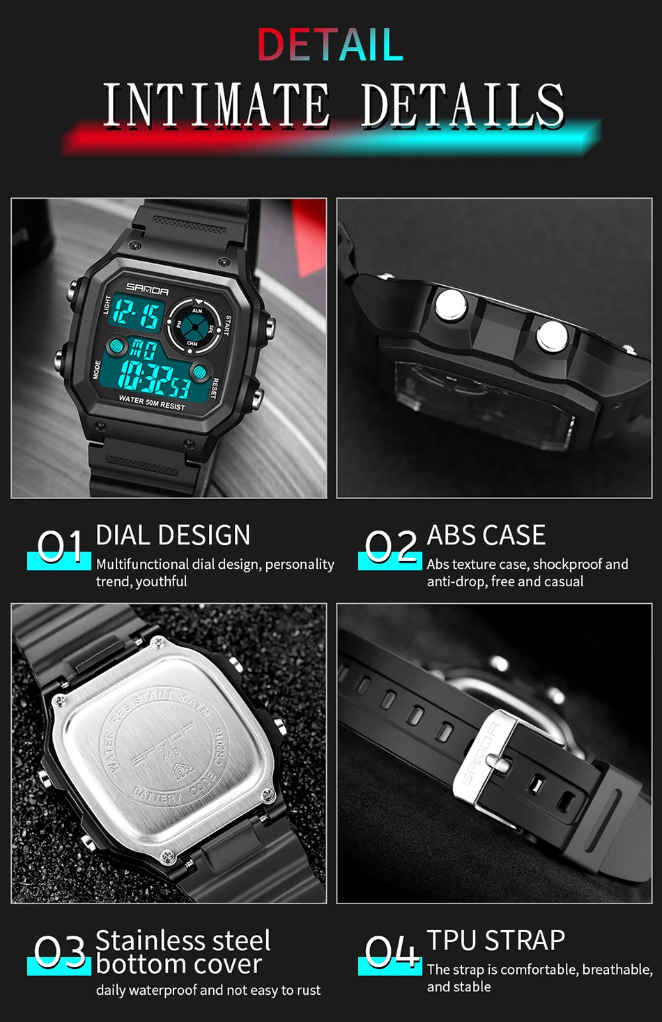 Часы унисекс, цифровые, водонепроницаемые, с секундомером, со светящимся дисплеем, 2021