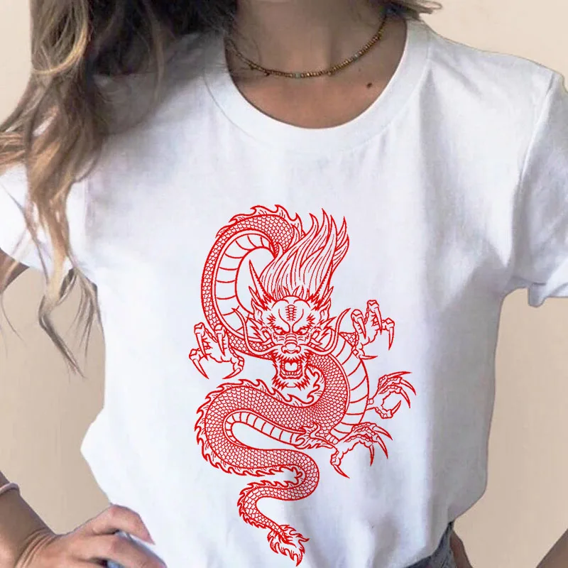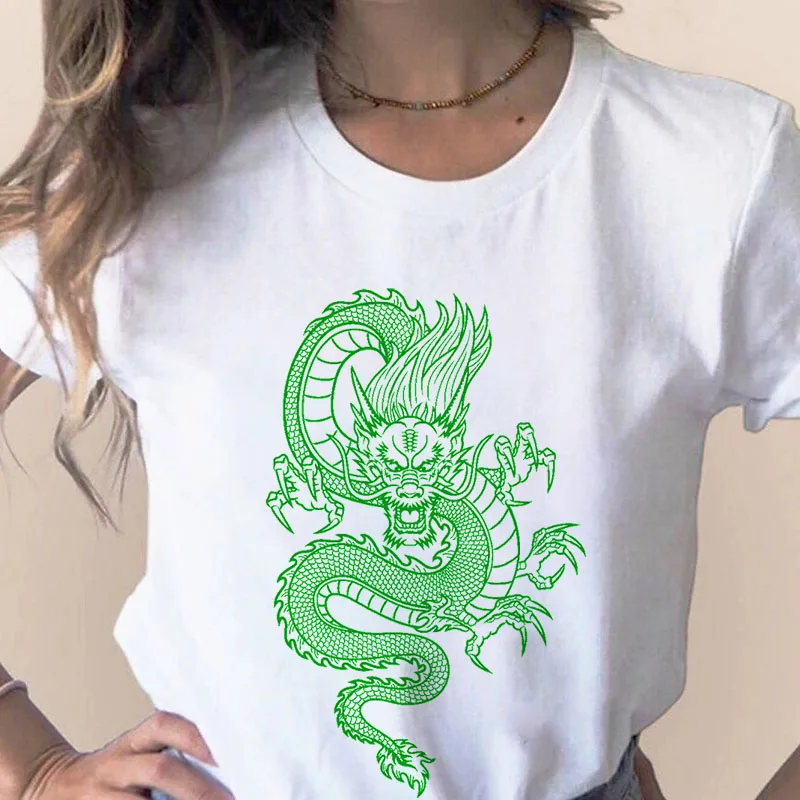 2021 для женщин, летние футболки с принтом в виде дракона; Узкая Женская футболка с коротким рукавом Повседневная Уличная модная женская футболка топы размера плюс S-XXXL