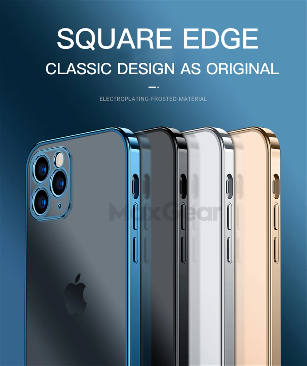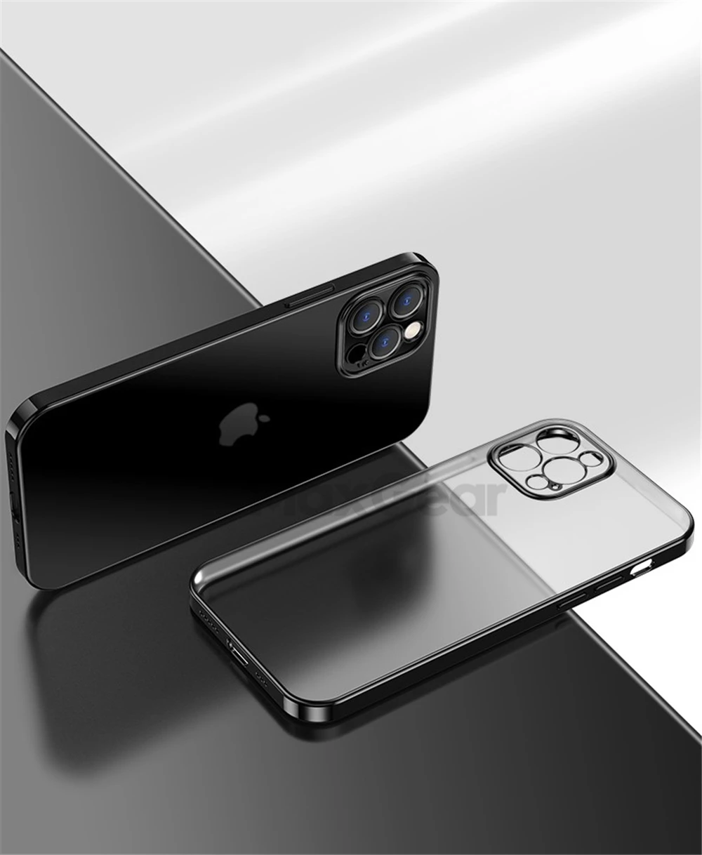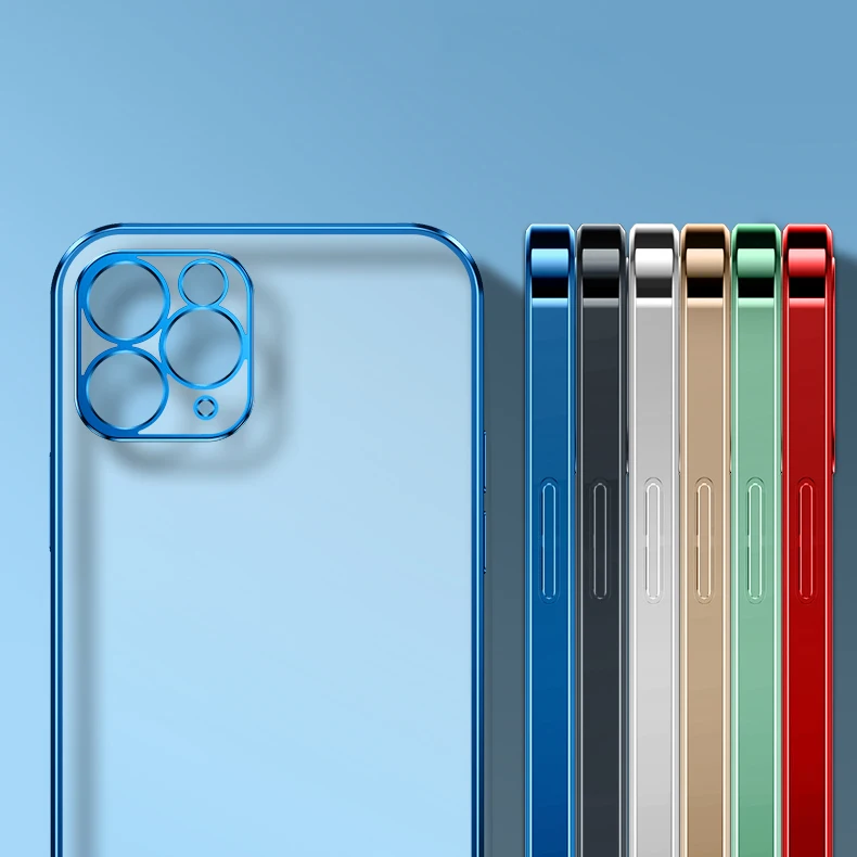 Роскошный Матовый Мягкий силиконовый чехол с квадратным покрытием для iPhone 11 12 Pro Max Mini XR X XS 6s 7 8 Plus SE 2020 прозрачный