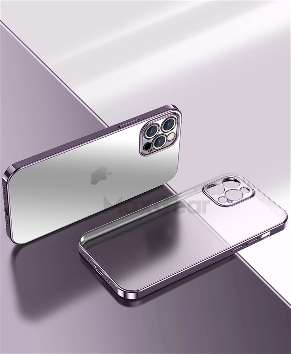 Роскошный квадратный Прозрачный чехол с покрытием для iPhone 11 12 ...