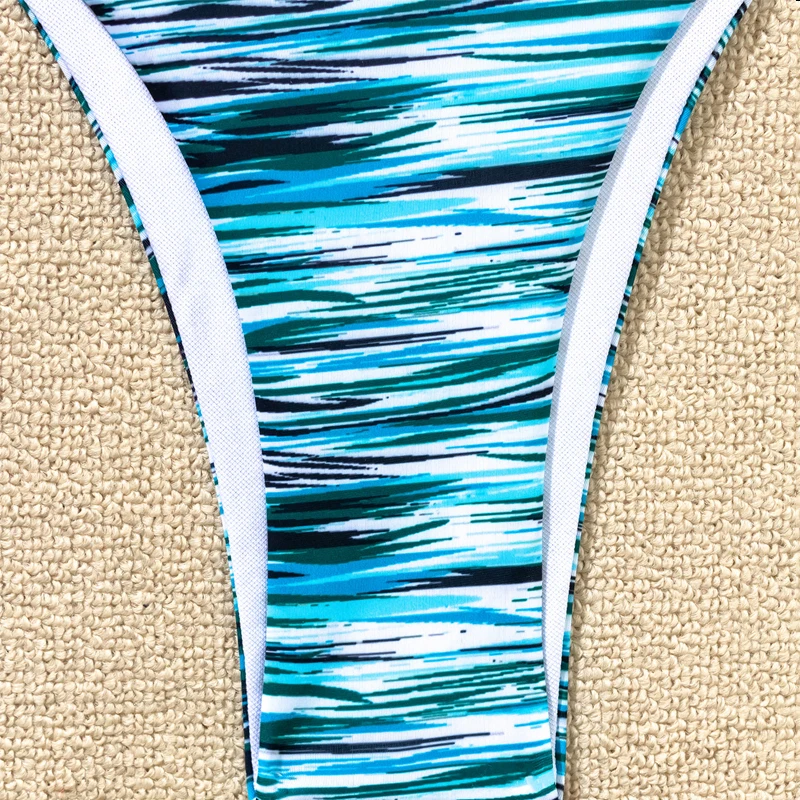 Купальник-бикини женский треугольный с высоким вырезом и принтом