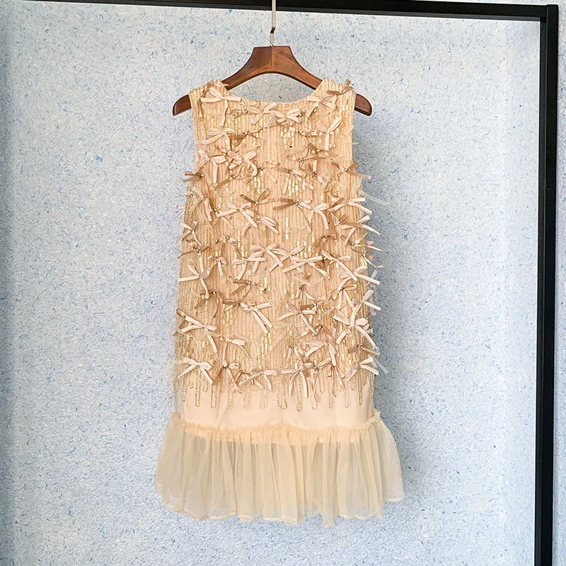 Платье из тюля без рукавов с бантом и роскошный дизайн с кисточками и отделкой бисером Rufless мини-платье А-силуэта из летние женские светильник платье вечерние одежда Новинка