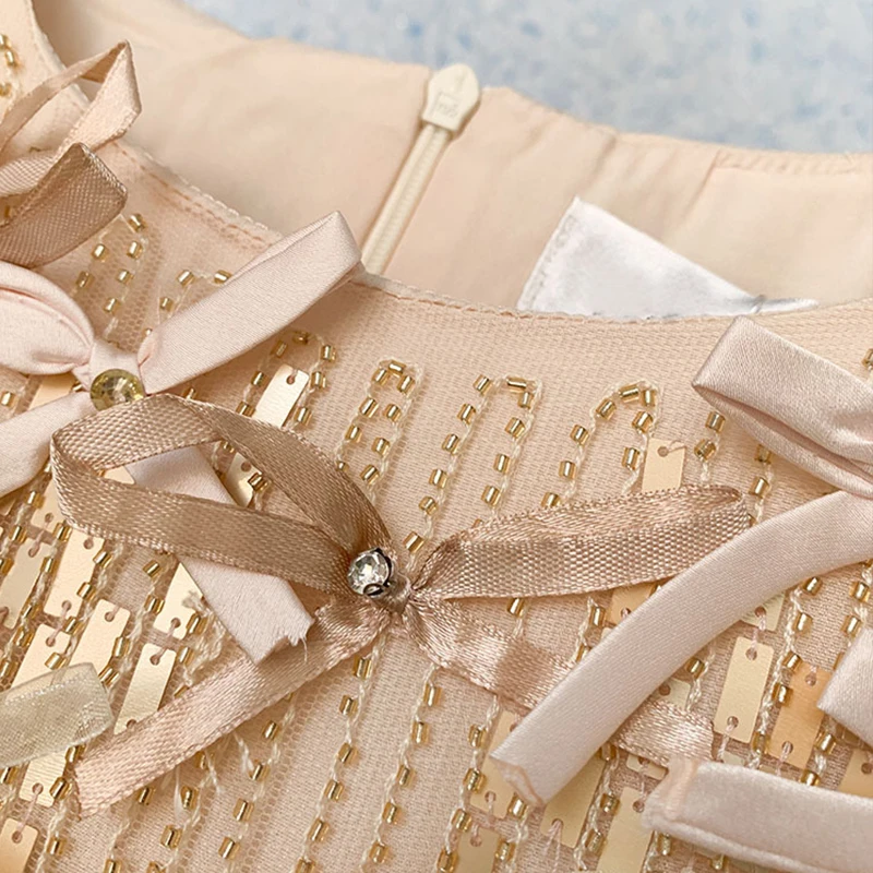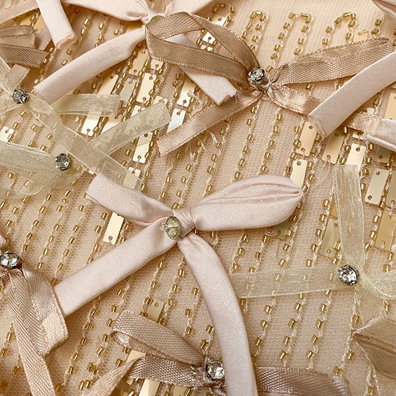 Прозрачные стразы с бисером и бантом белое ТРАПЕЦИЕВИДНОЕ ПЛАТЬЕ 20...