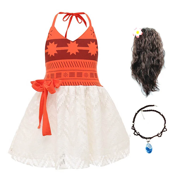 Детский Рождественский костюм Моаны, на бретелях, с открытой спиной, летнее платье с париком и ожерельем, детская одежда, карнавальный наряд для дня рождения