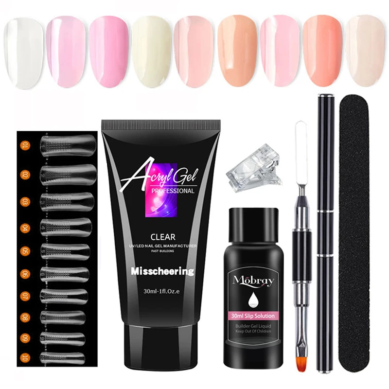 Набор гель для наращивания ногтей, 30 мл, прозрачный дизайн ногтей, телесный розовый цвет, УФсветодиодный гель с кисточкой, скользящий раствор для наращивания ногтей