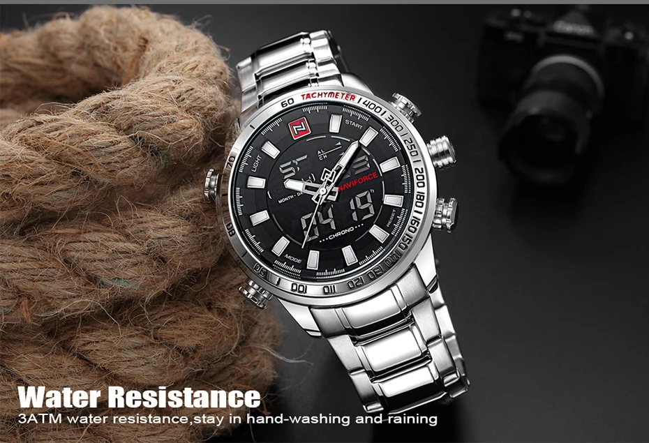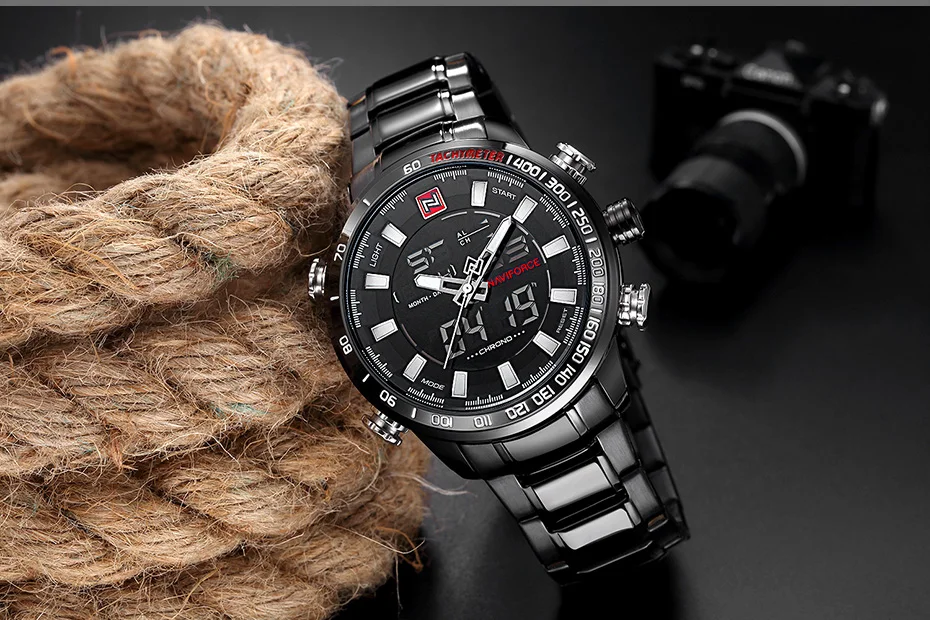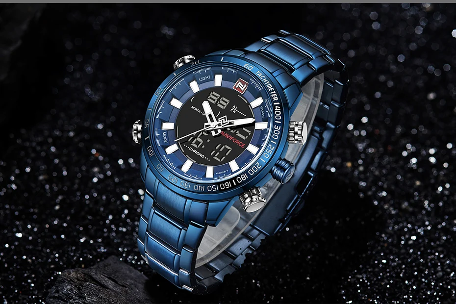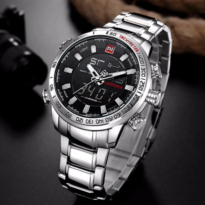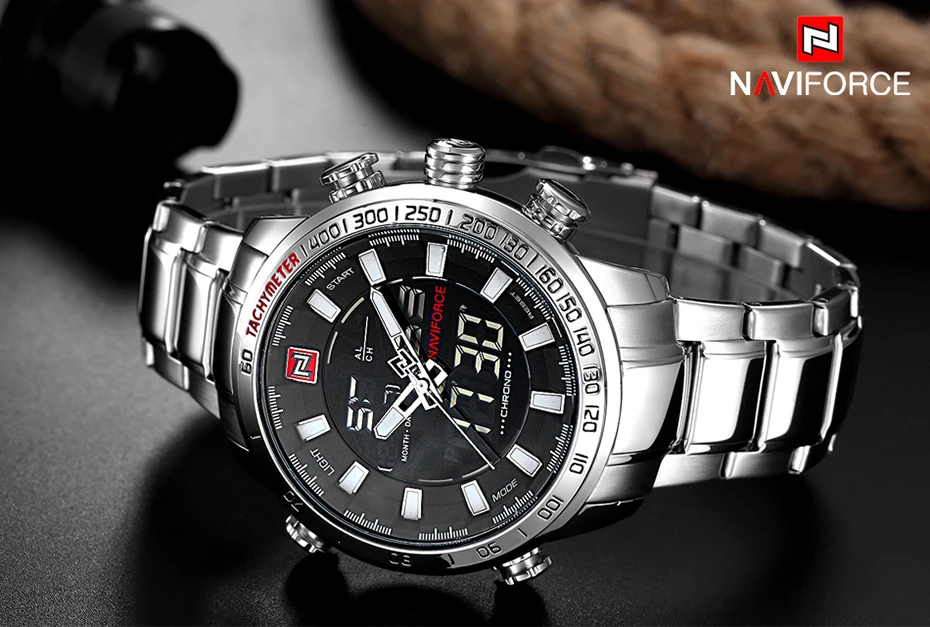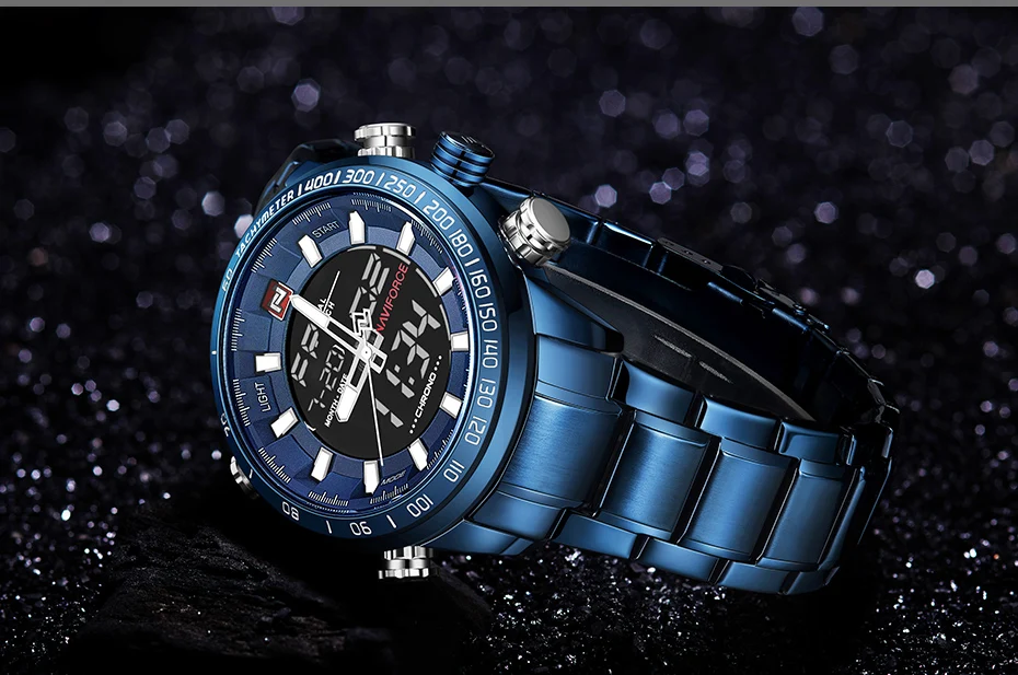 Часы NAVIFORCE Мужские кварцевые с большим дисплеем, роскошные креативные цифровые спортивные наручные, с датой