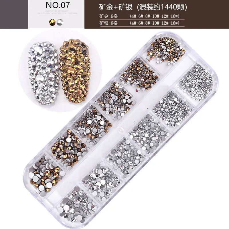 1 упаковка, многоразмерные плоские стеклянные стразы для ногтей, дл...