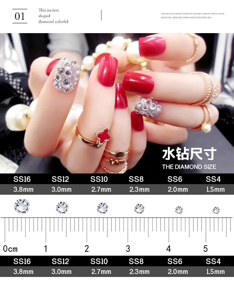 1 упаковка SS4-SS16 украшения для дизайна ногтей модные стразы для ...