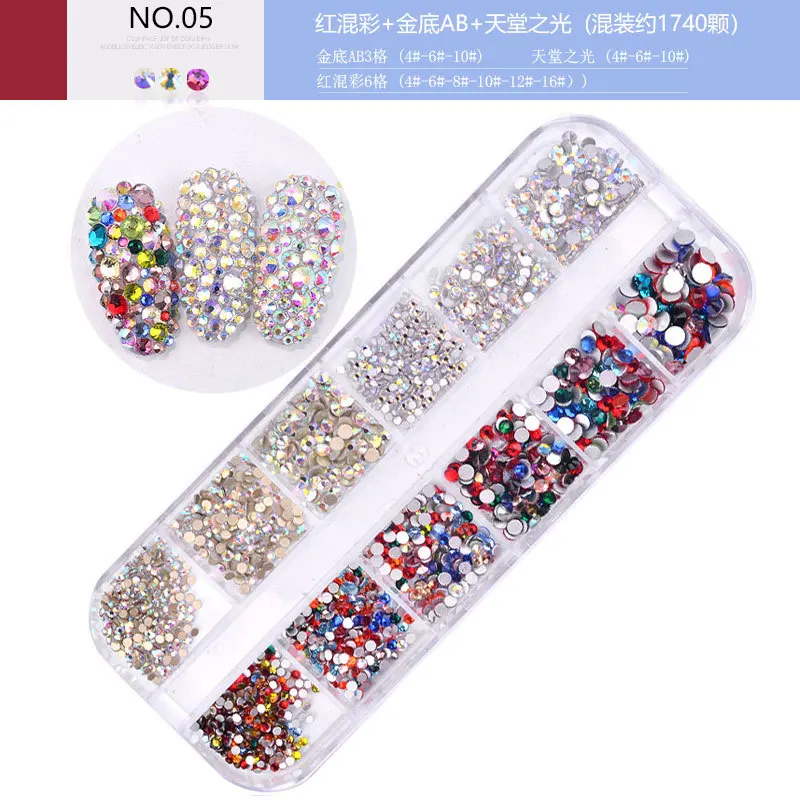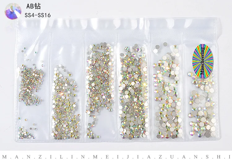 1 чехол смешанные размеры AB плоские Стразы для ногтей разные цвета...