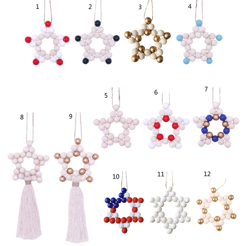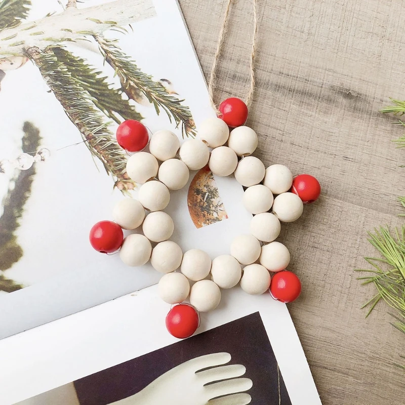 Деревянная подвесная гирлянда из бусин с пятиконечной звездой X7XD, рождественские украшения для дома